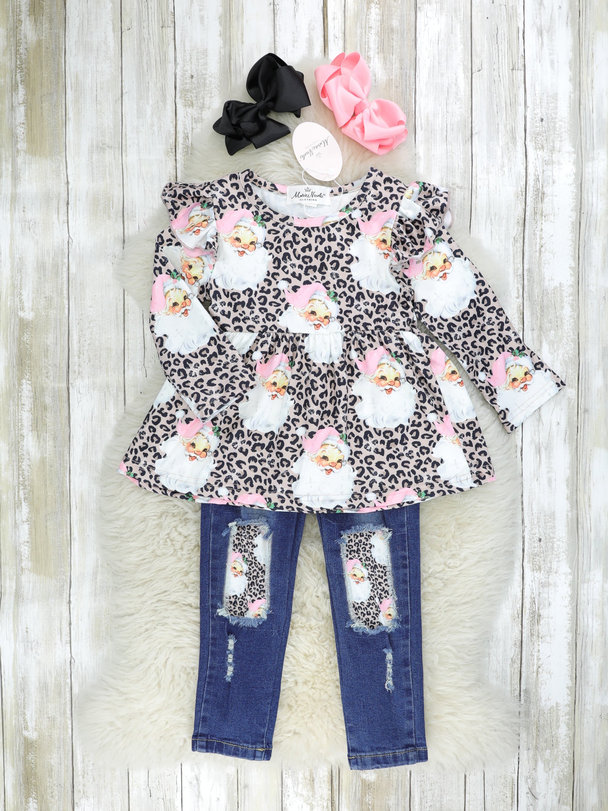 Leopard Buffalo Plaid Santa 3-Piece Outfit