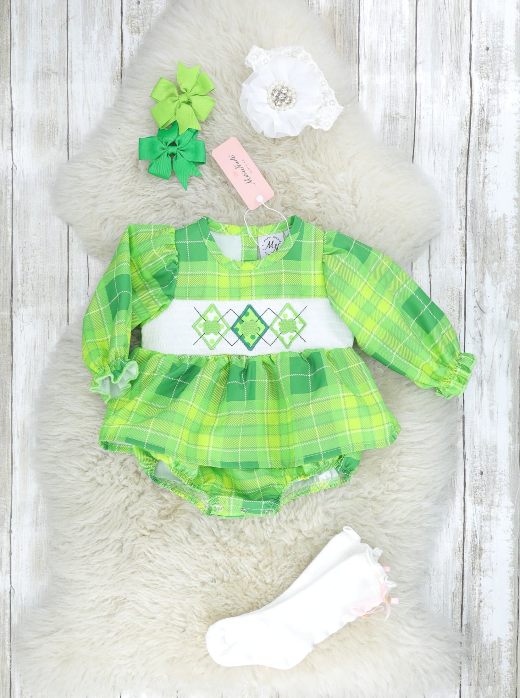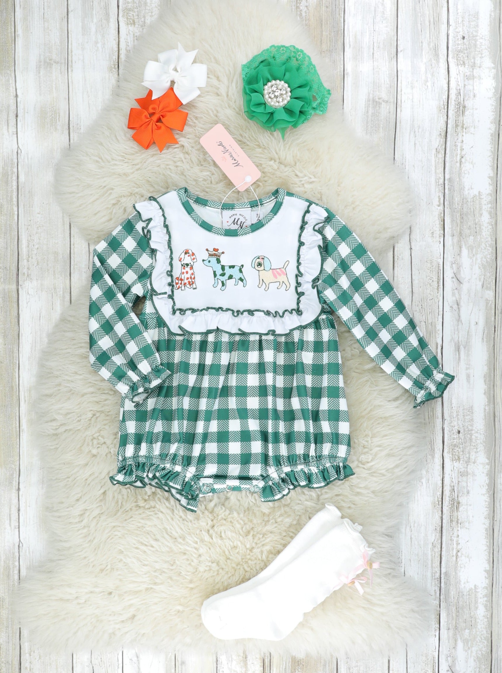 MNC Royal Pups™ Green Gingham Ruffle Romper