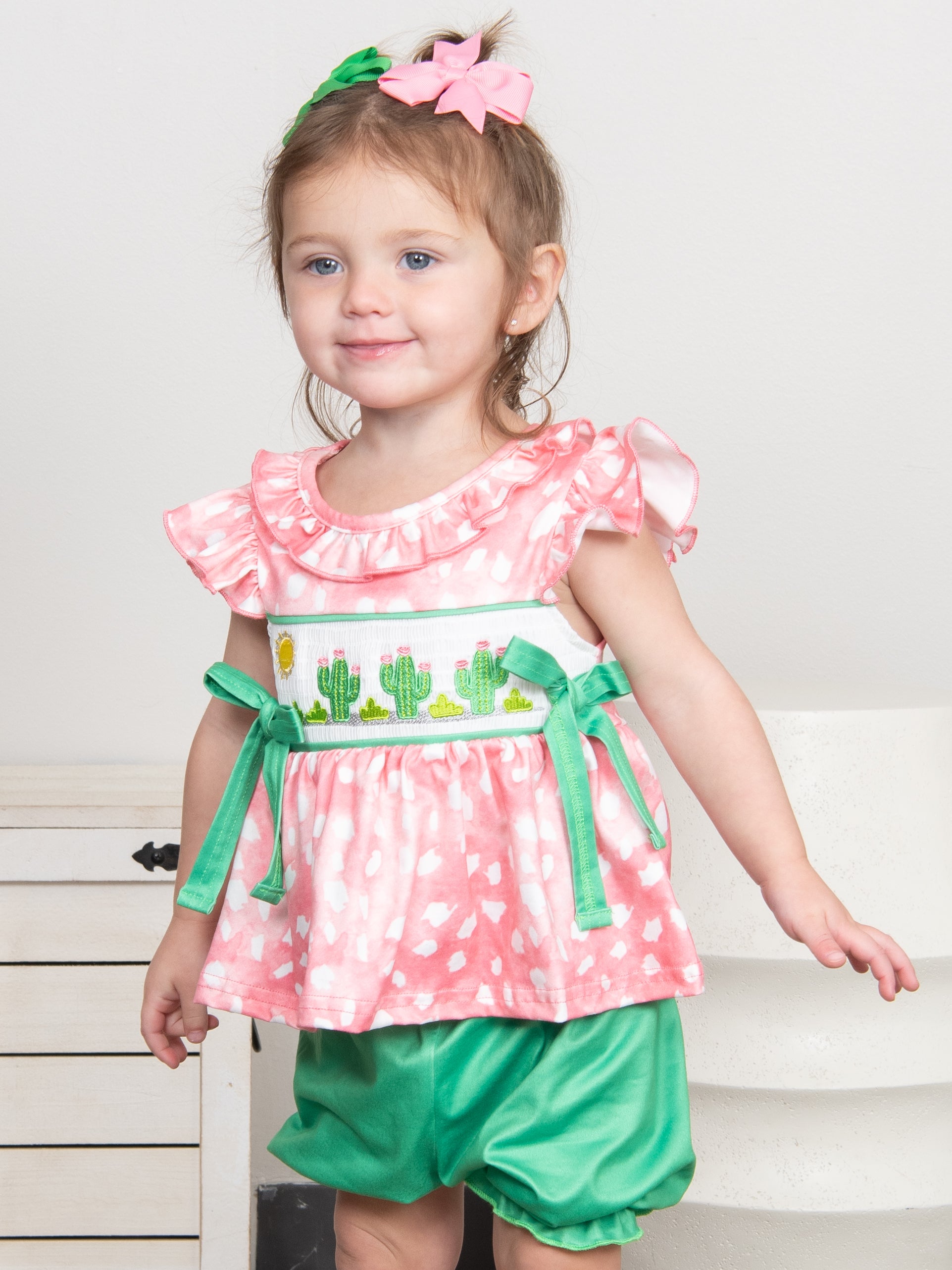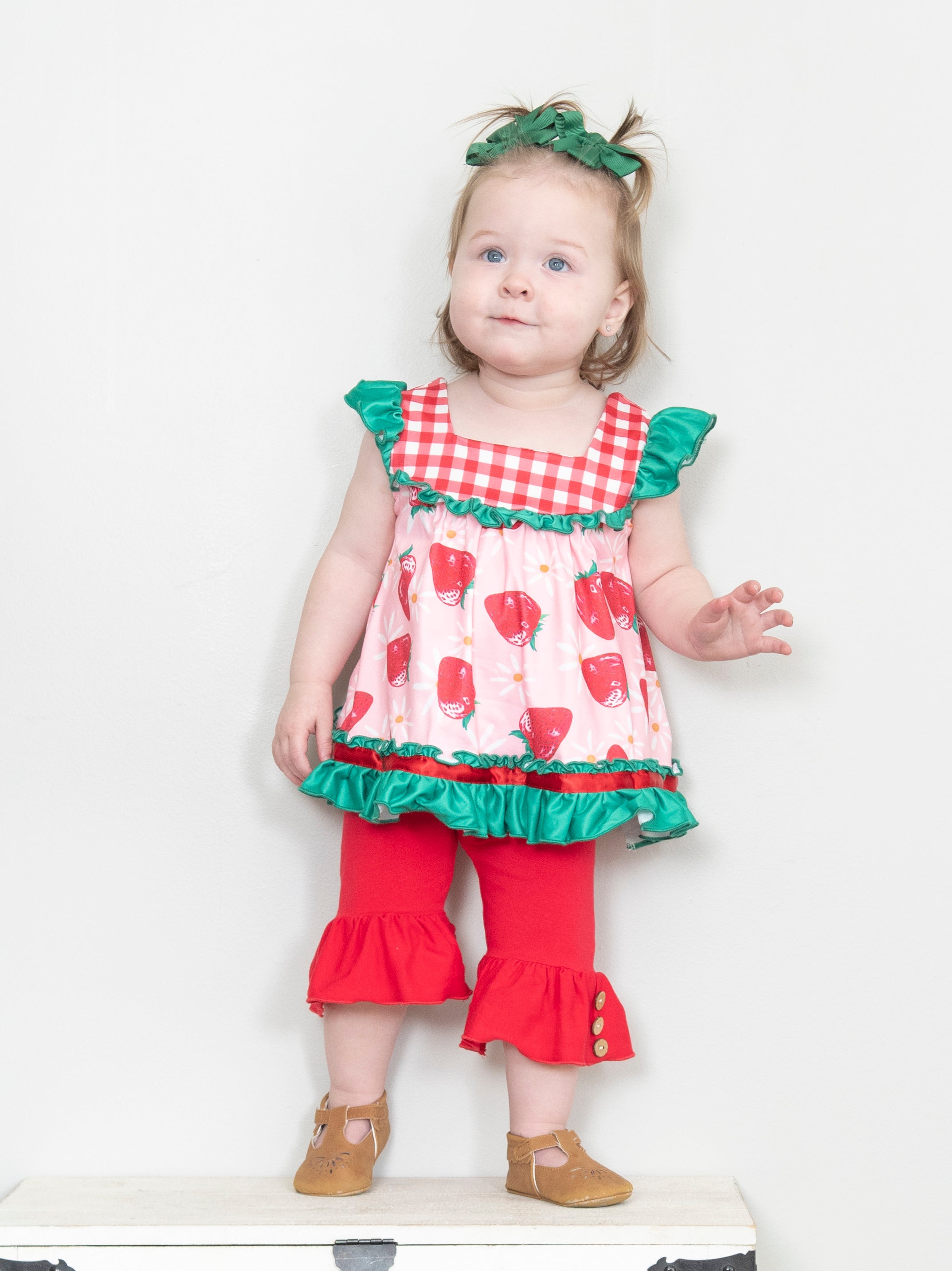 Polka Dot Smocked Strawberry Ruffle Outfit