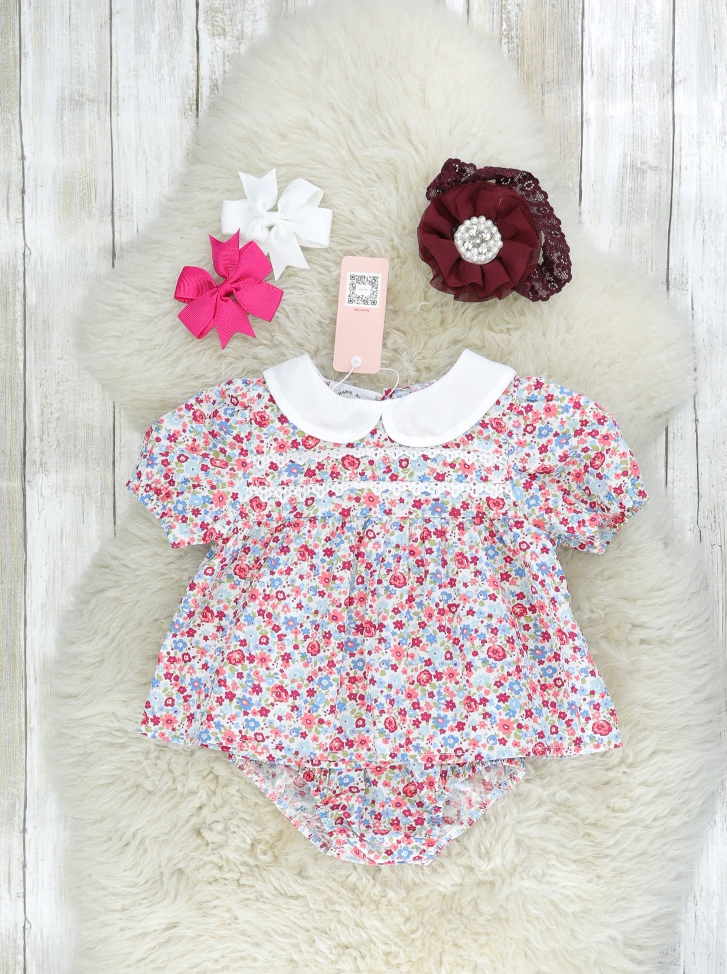 Red Ditsy Floral Vintage Top & Bloomers Outfit
