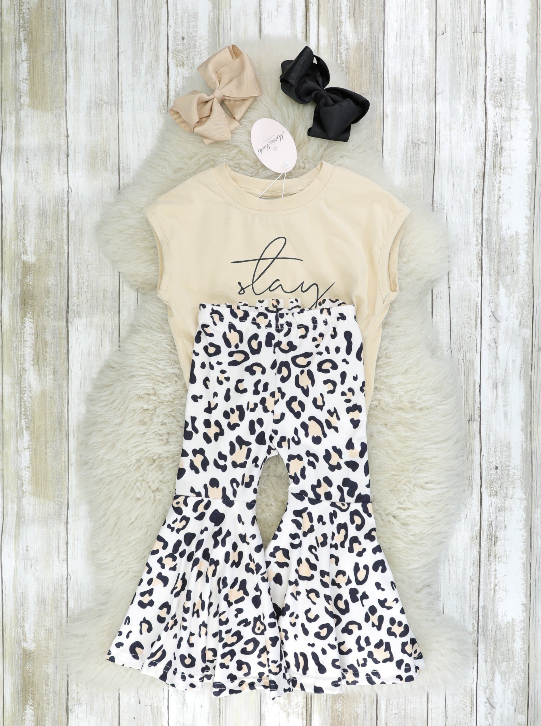 "Stay Wild" Tie Tank & Leopard Bell Bottoms Outfit