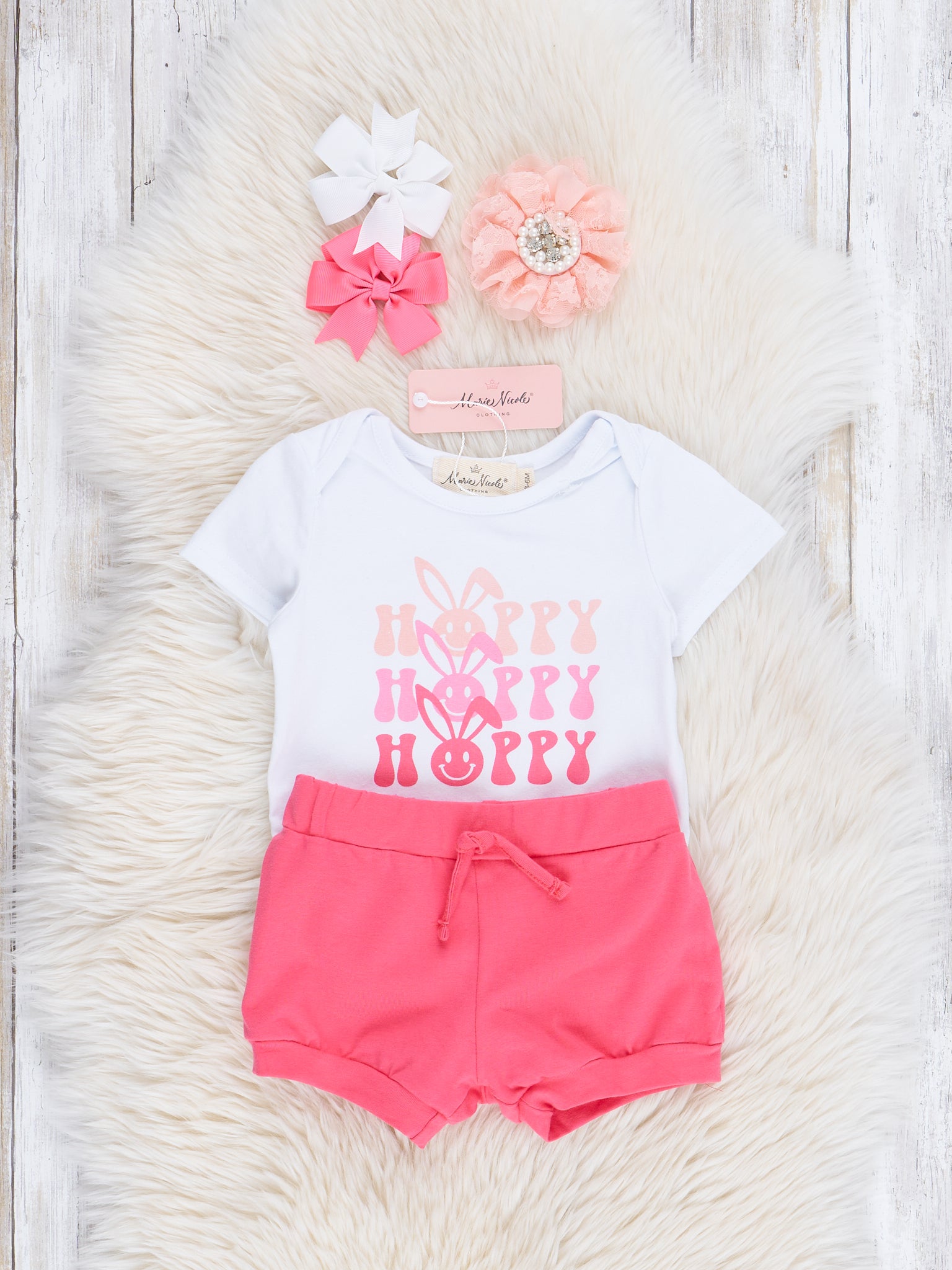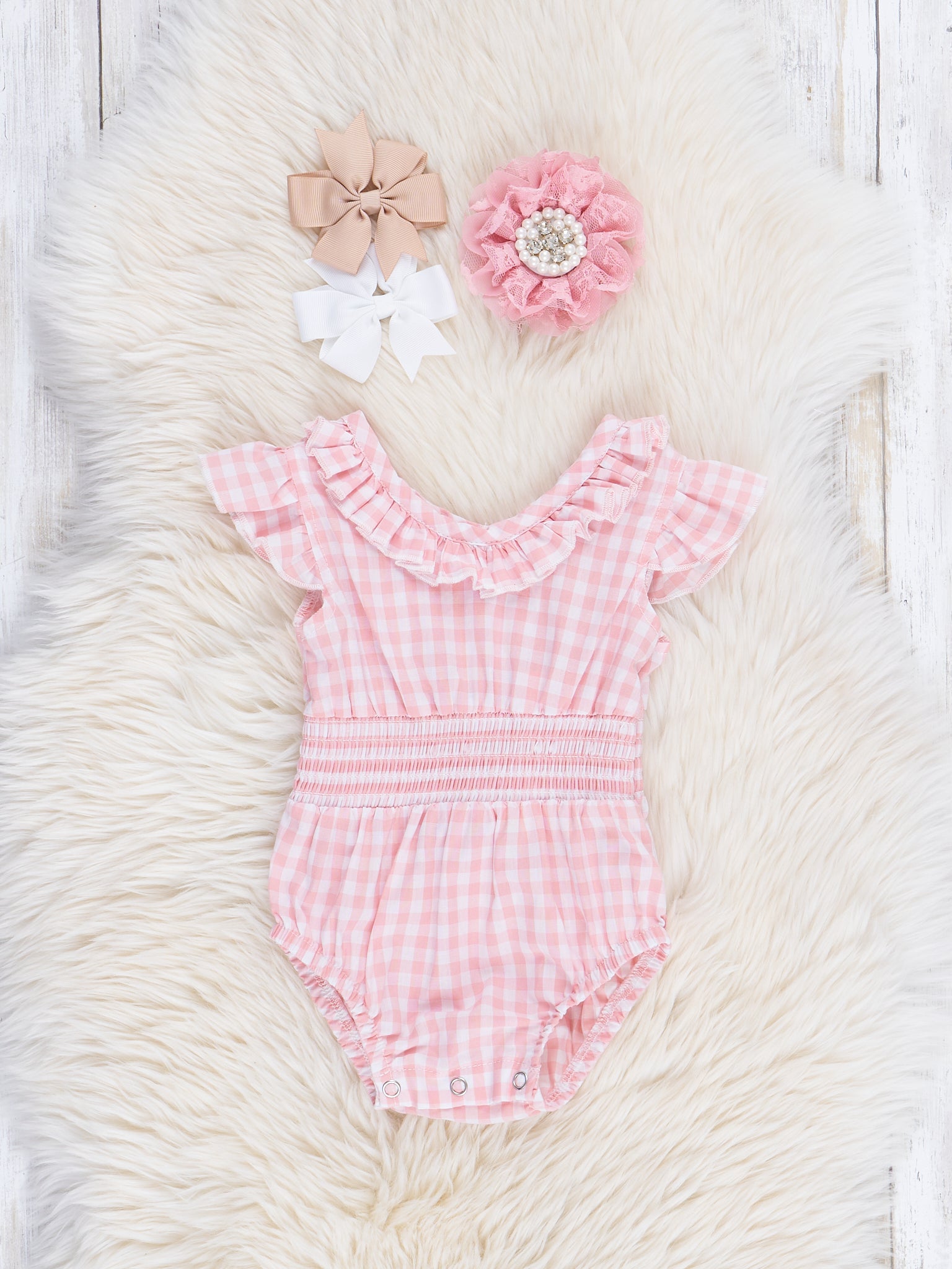 Pink & Green Gingham Bunny Ruffle Top & Bloomers Set