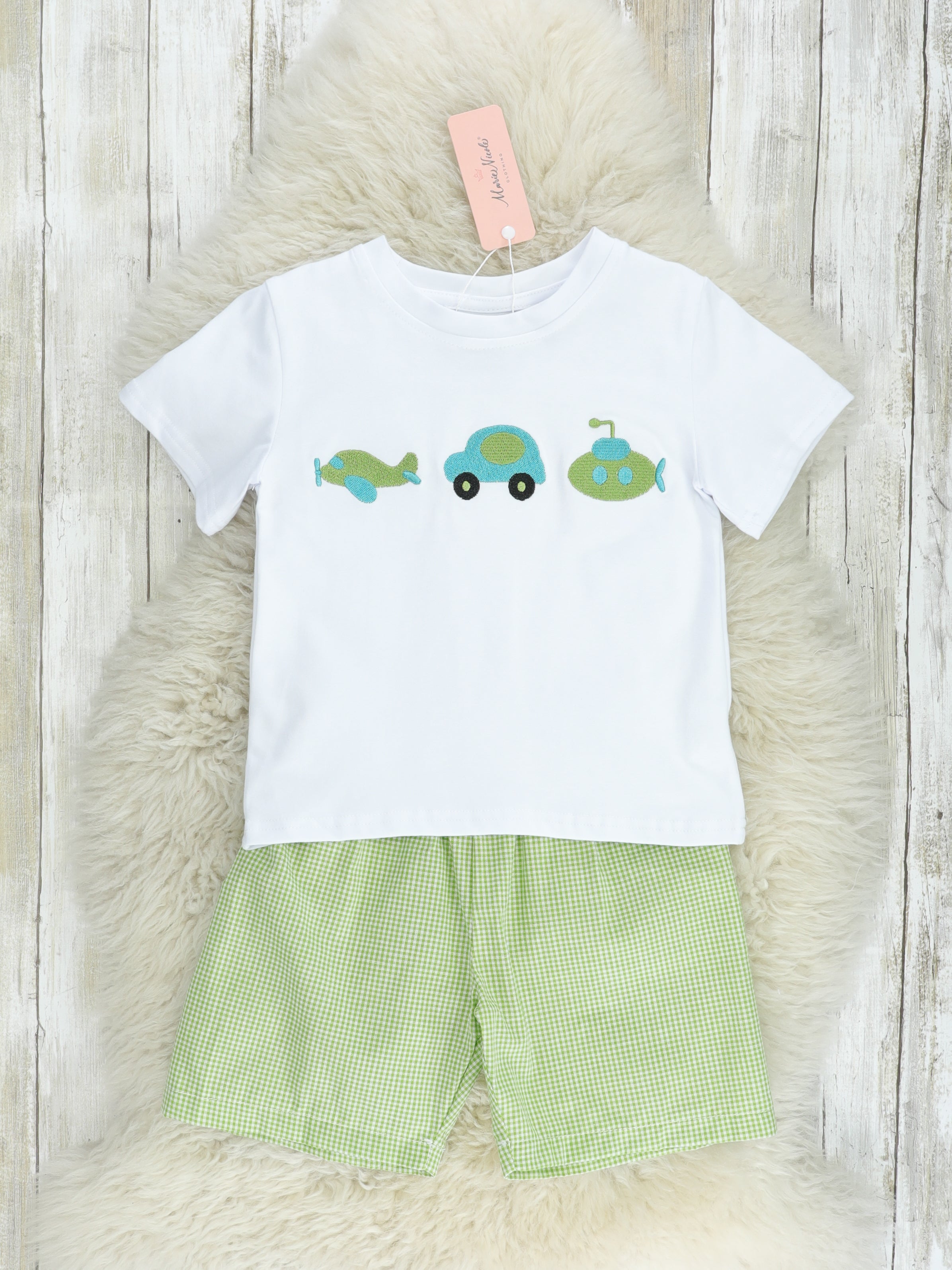 Red Gingham Strawberry Bib Collar Bloomers Outfit