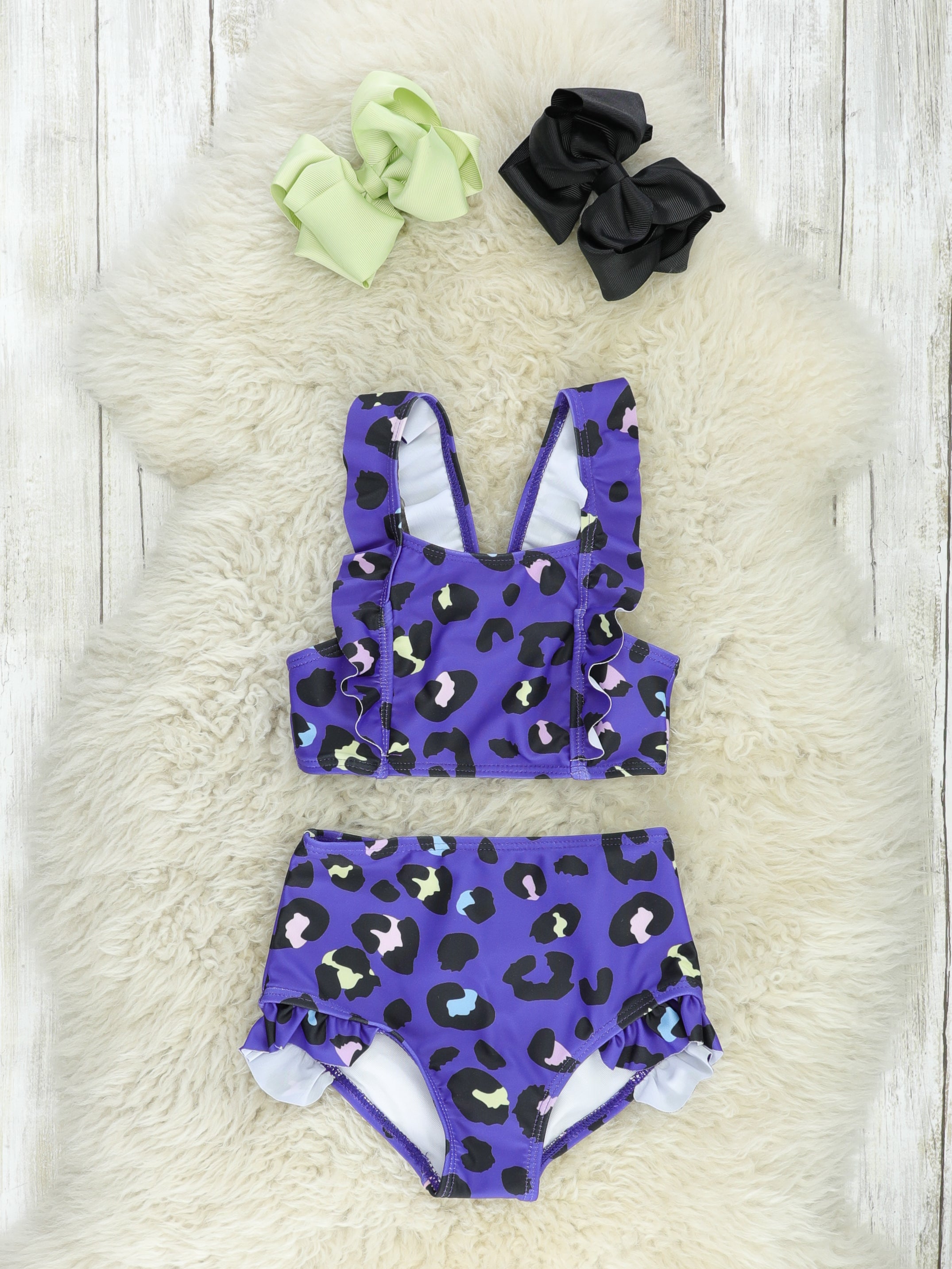 Indigo Leopard 2-Piece Ruffle Swimsuit