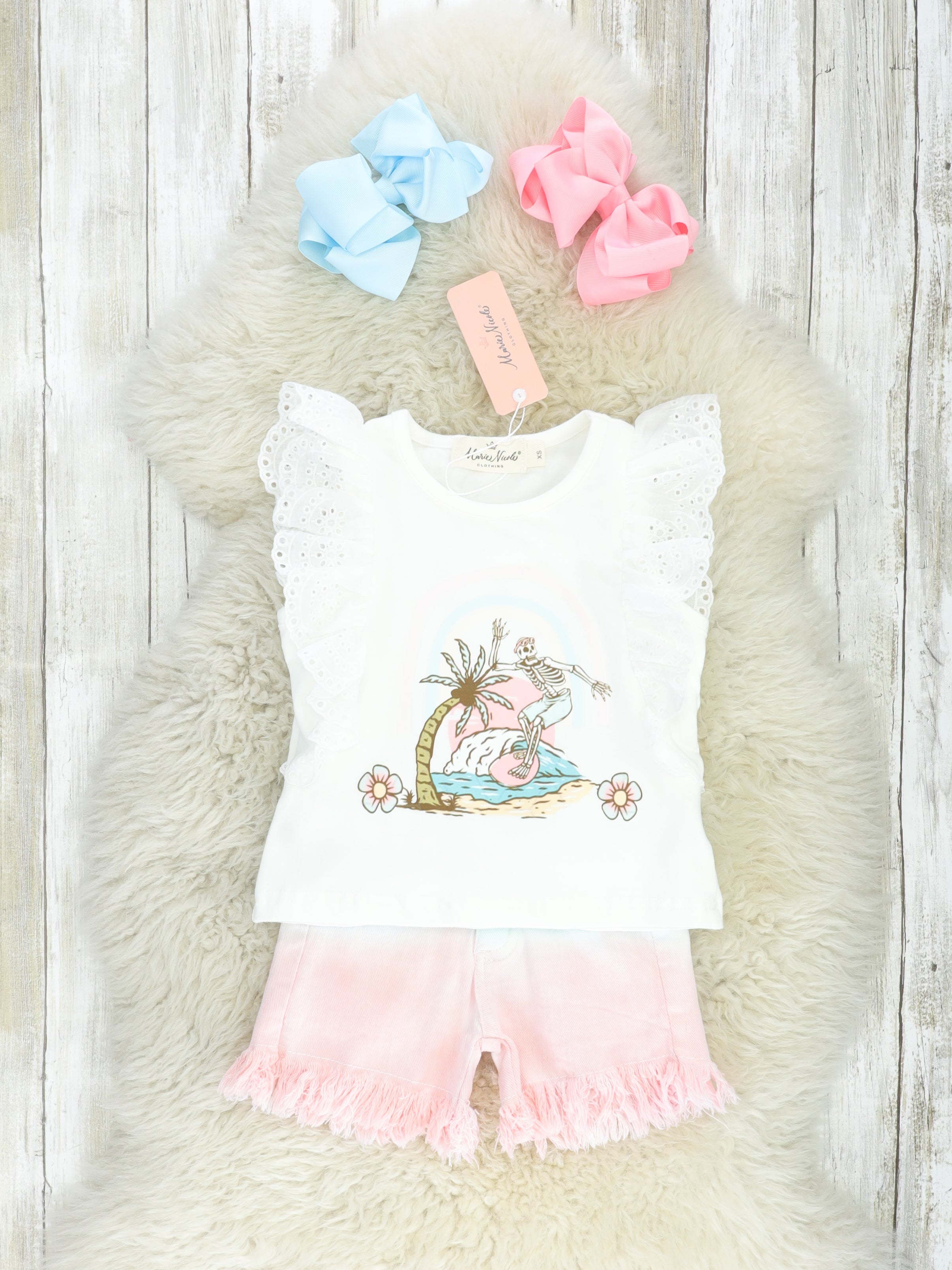 Paradise Ruffle Top & Ombre Shorts Outfit