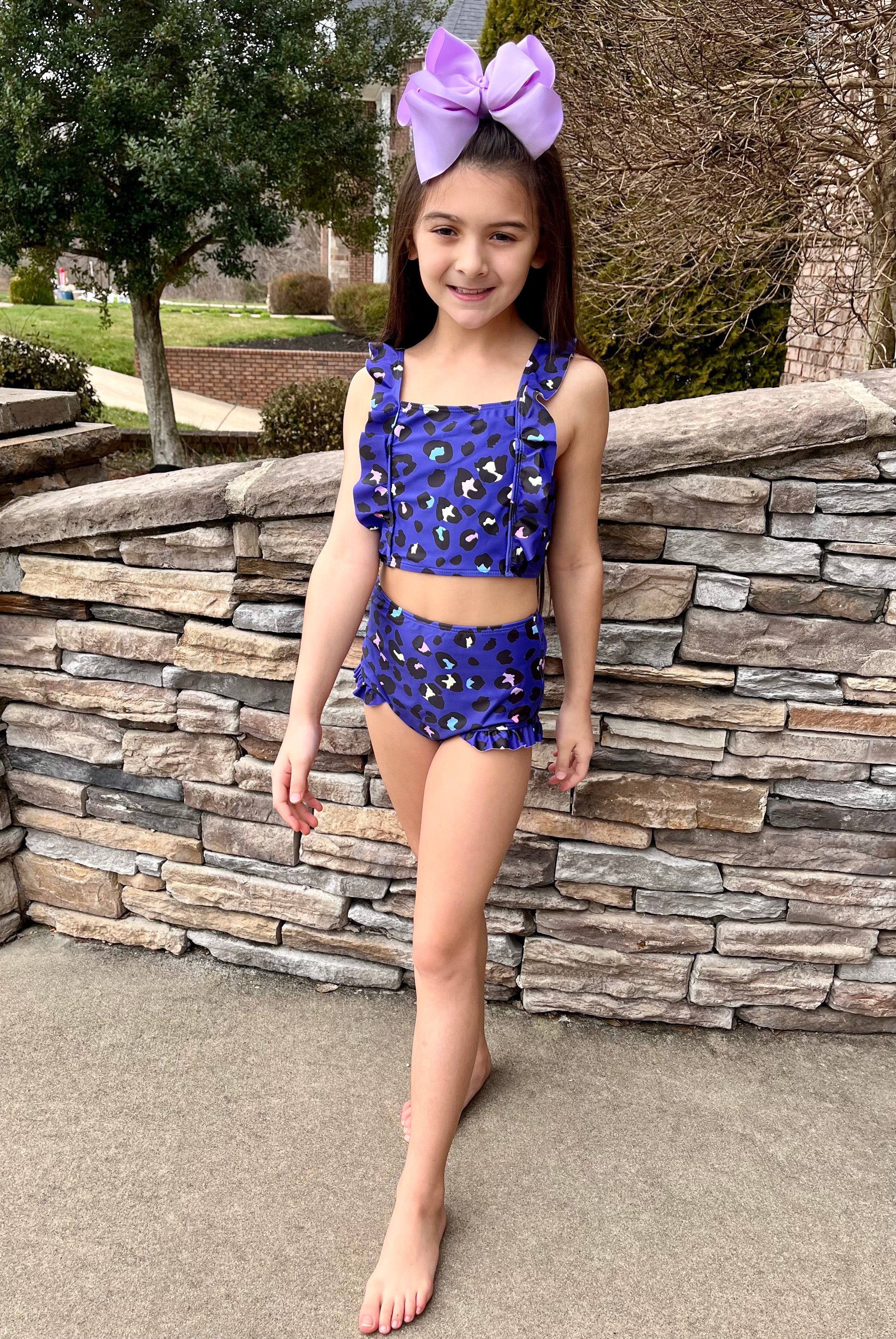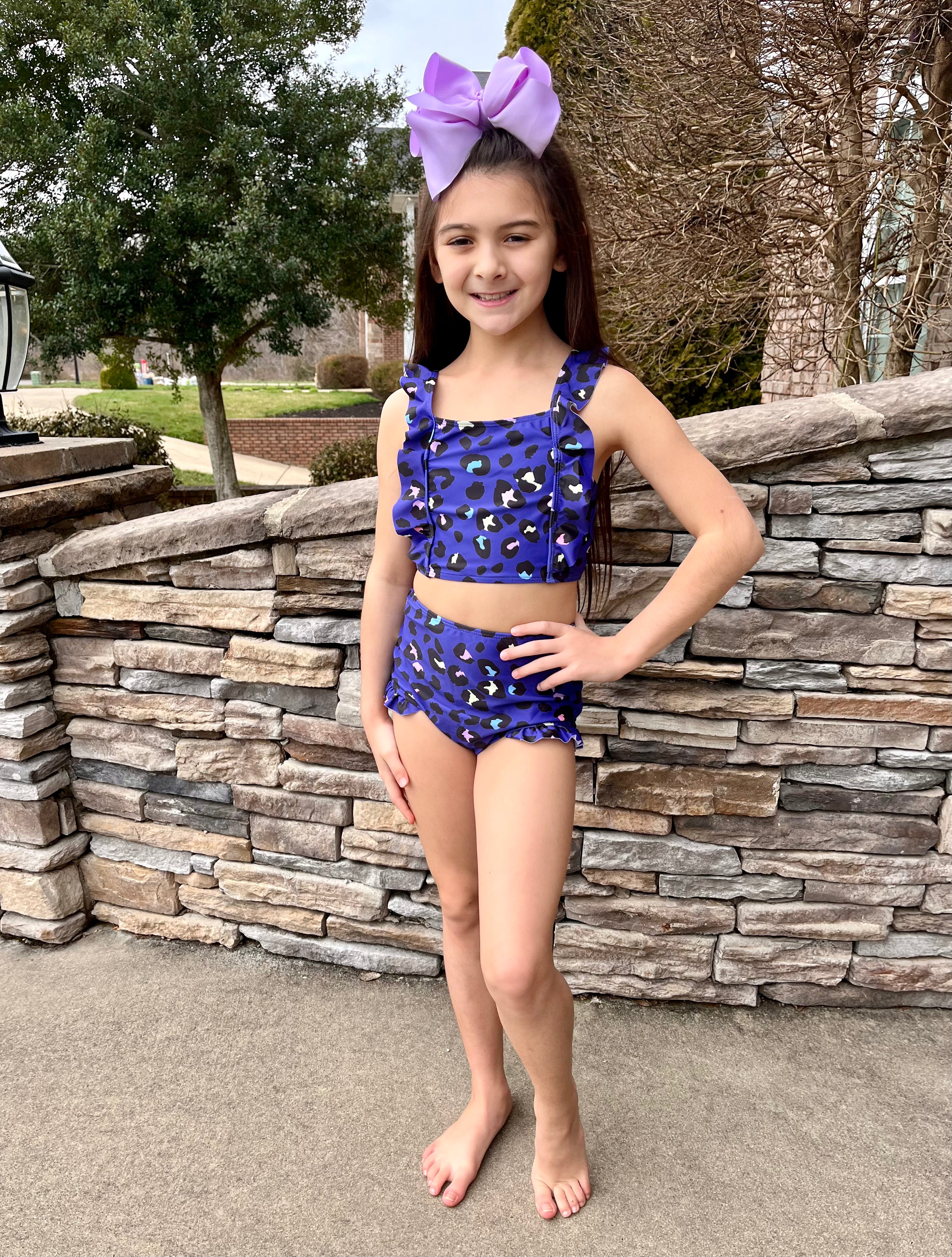 Indigo Leopard 2-Piece Ruffle Swimsuit