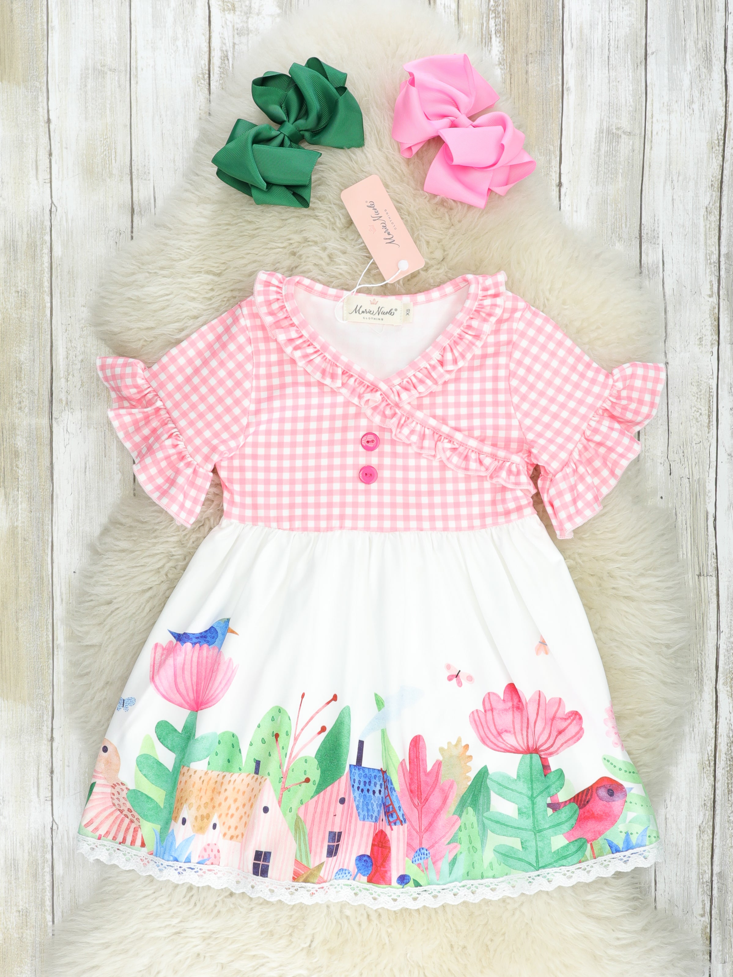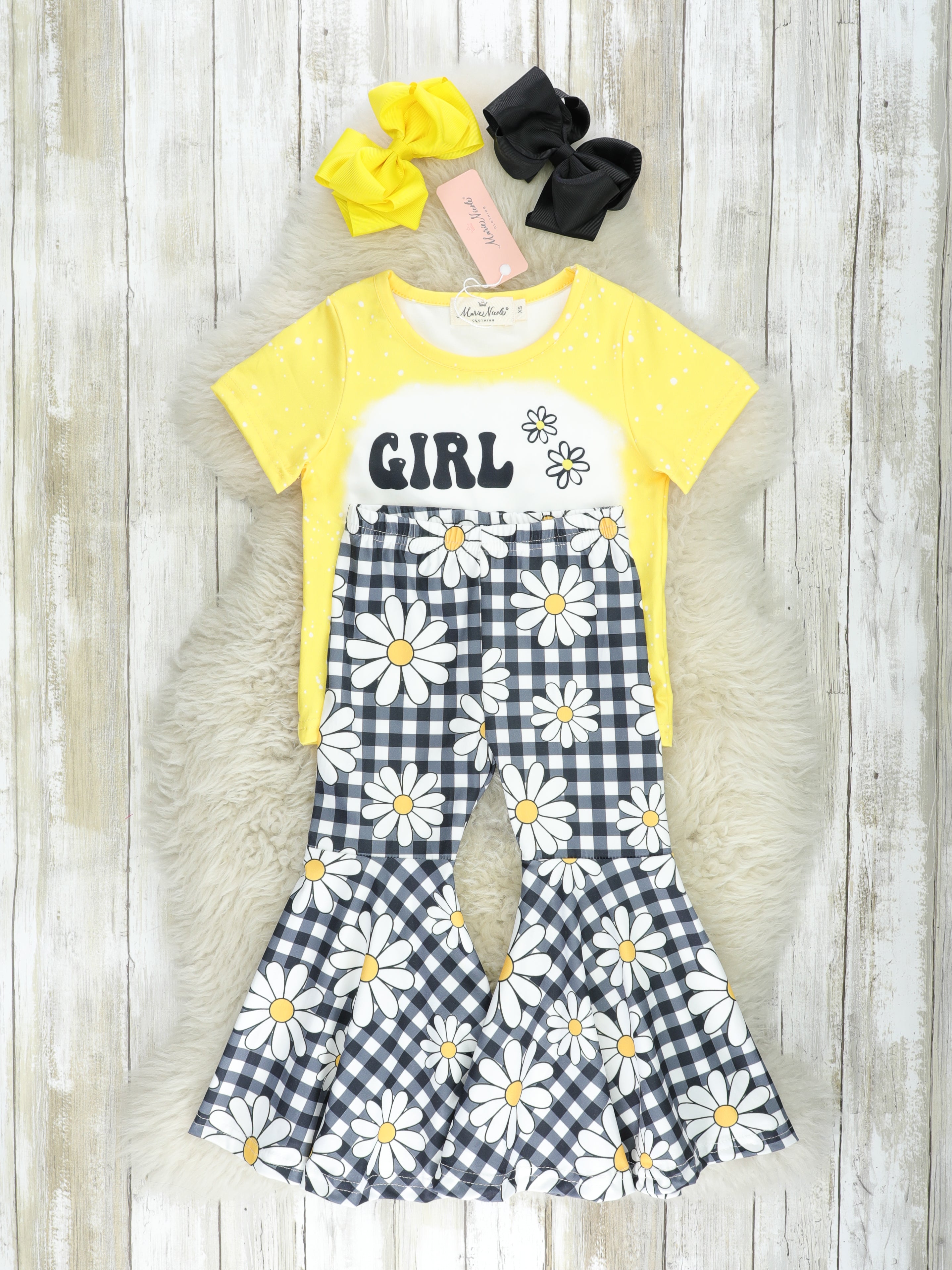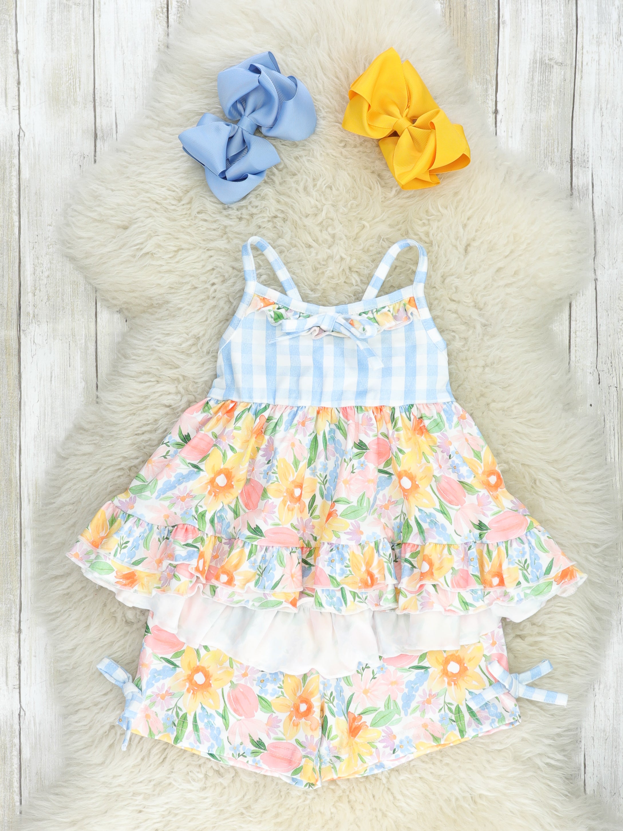 Blue Gingham & Yellow Floral Ruffle Outfit