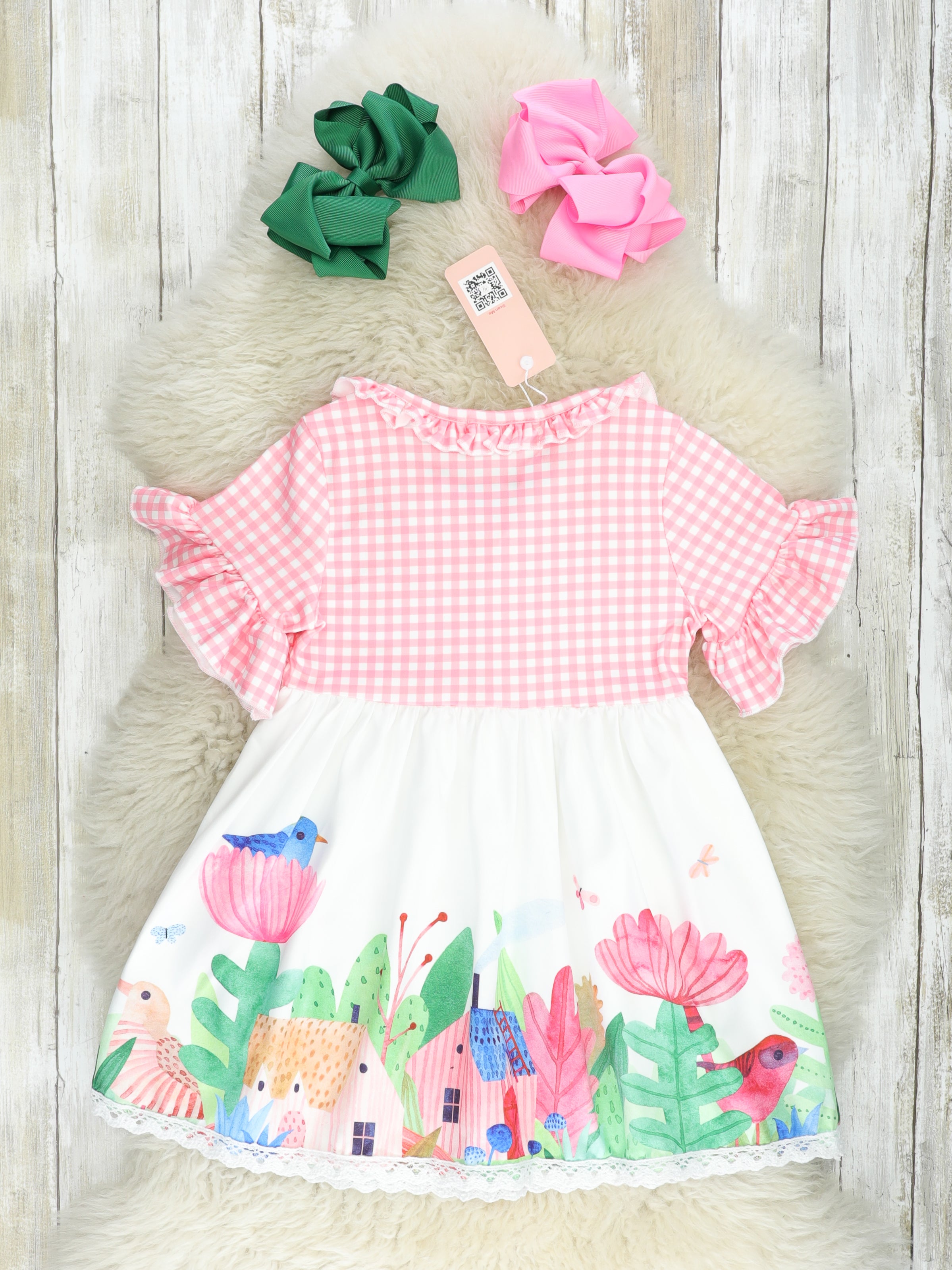 Let your little one look as cute as a button in this Pink Gingham Garden Ruffle Dress. Perfect for picnics, tea parties, and all the places in between, this dress will have them feeling pretty in pink! Showcasing delicate garden details, flouncy ruffles, and pretty lace trim, this dress will keep them looking fresh as a daisy!