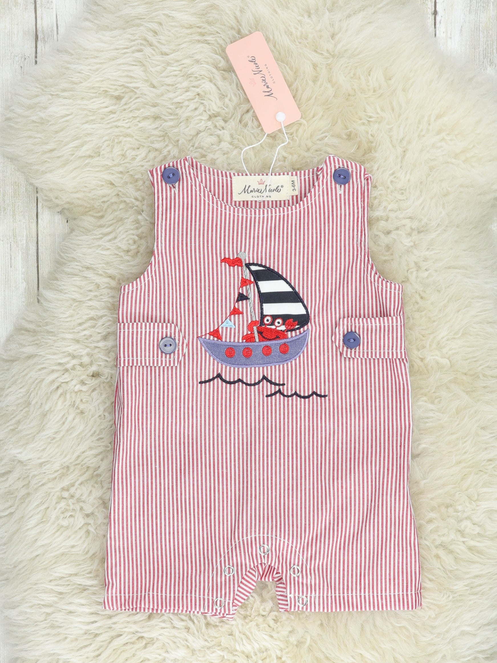 Take your tots sailing in style with our red pinstriped sailboat sibling set! The perfect johnny for your sailors, this features red pinstripes and an adorable sailboat appliqué that’s sure to make a splash.