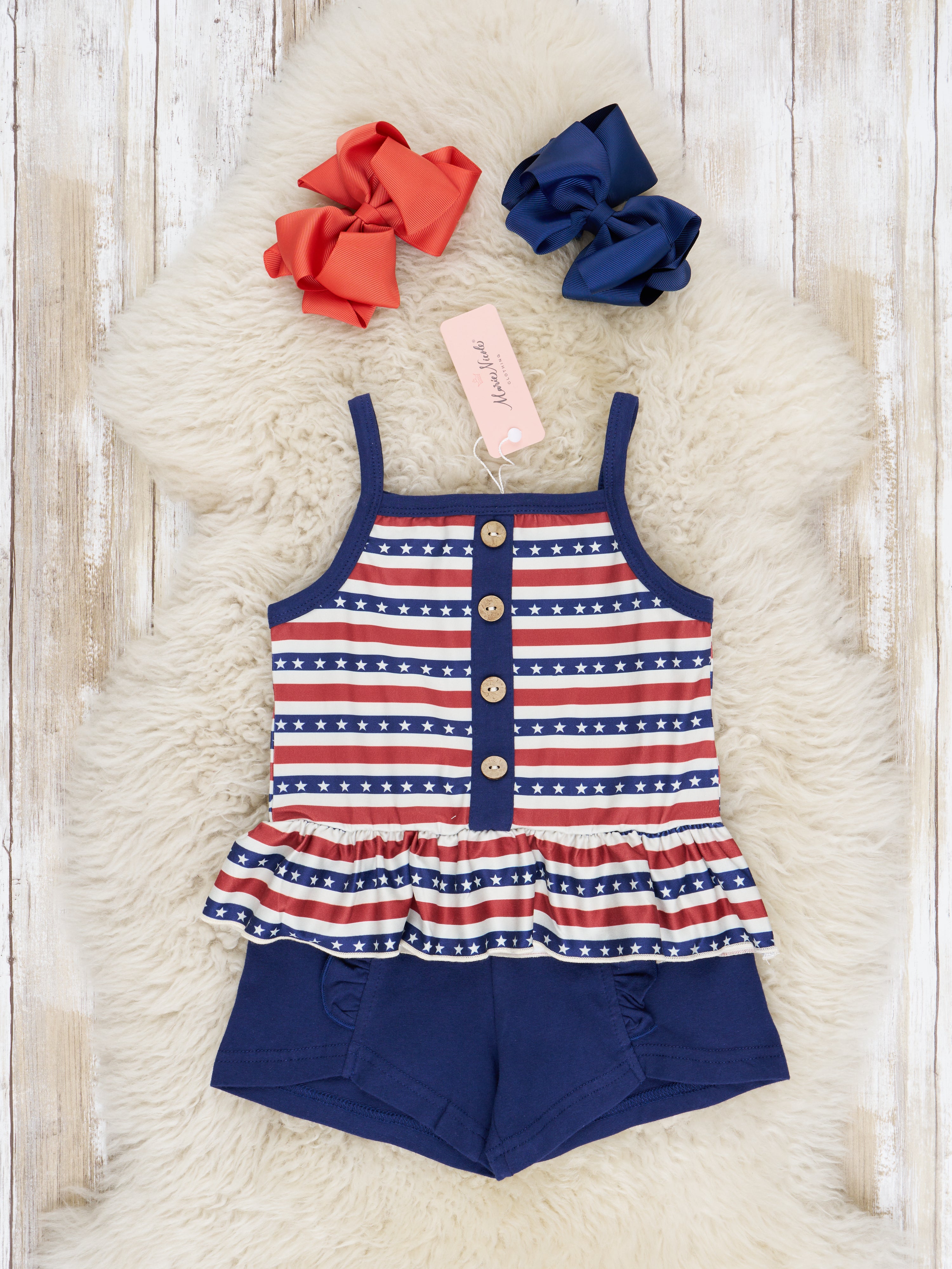 "Kind" Bee Ruffle Top & Denim Shorts Outfit