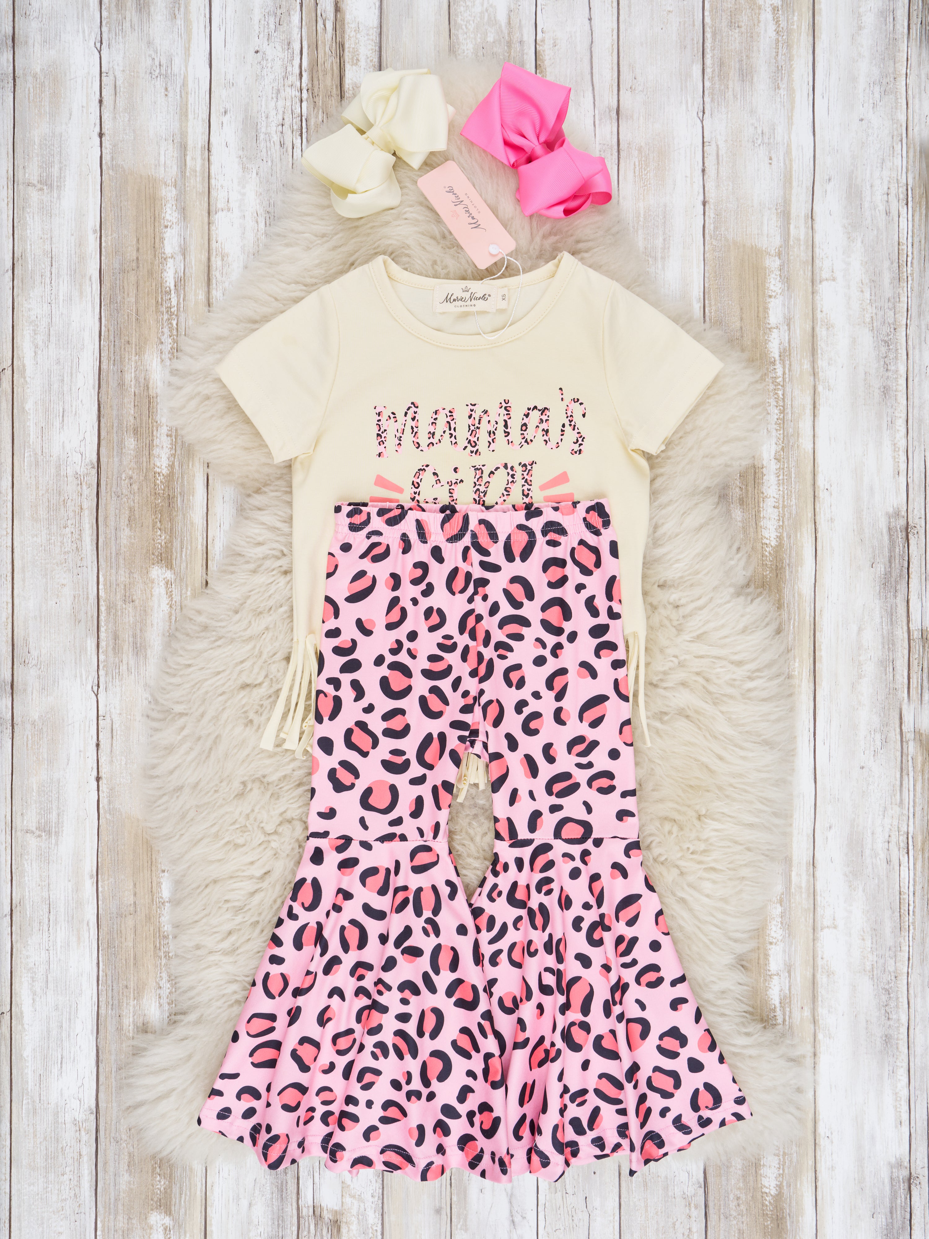 Sparkly "Mama's Girl" Leopard Bell Bottom Outfit