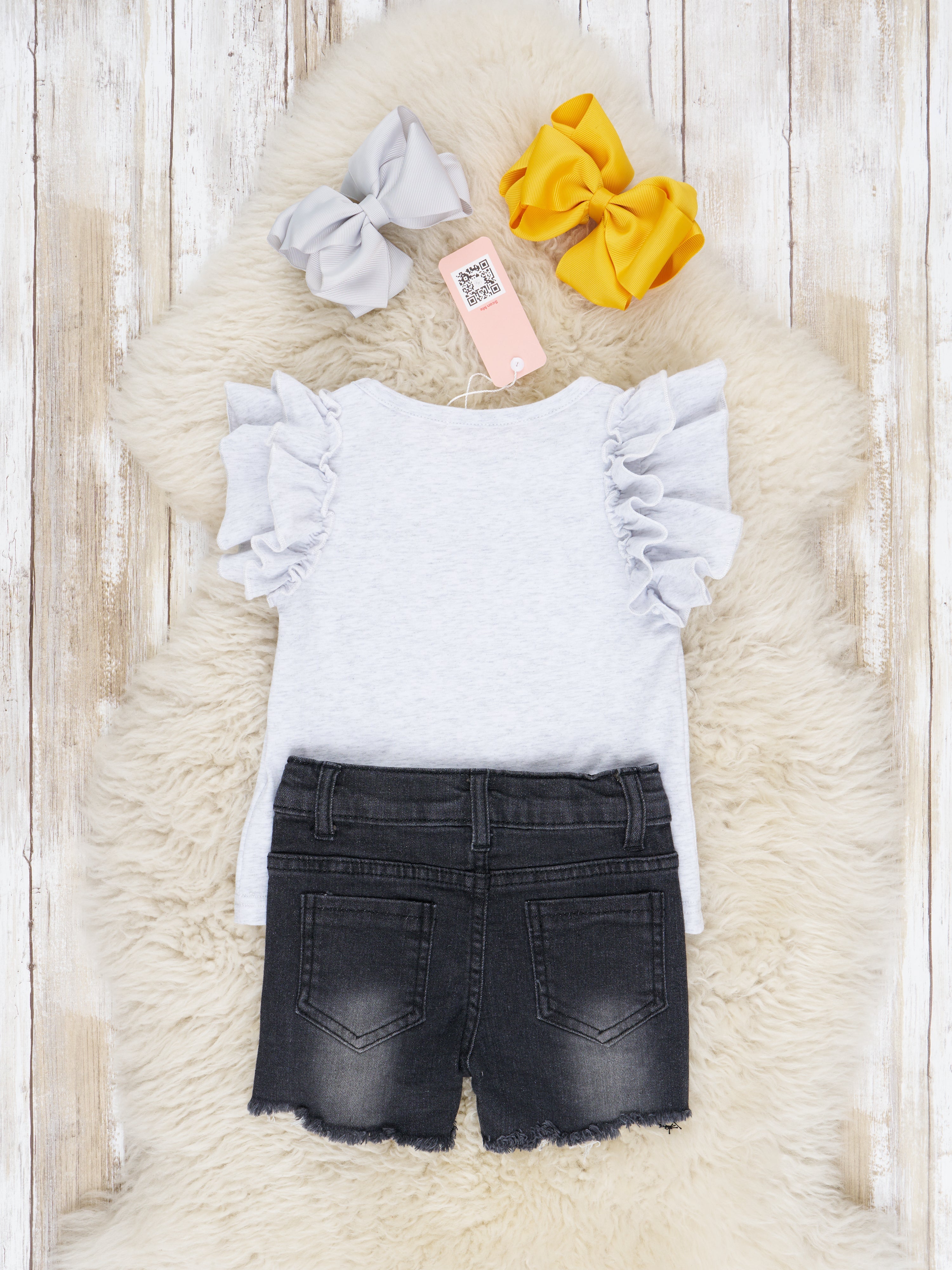 "Kind" Bee Ruffle Top & Denim Shorts Outfit