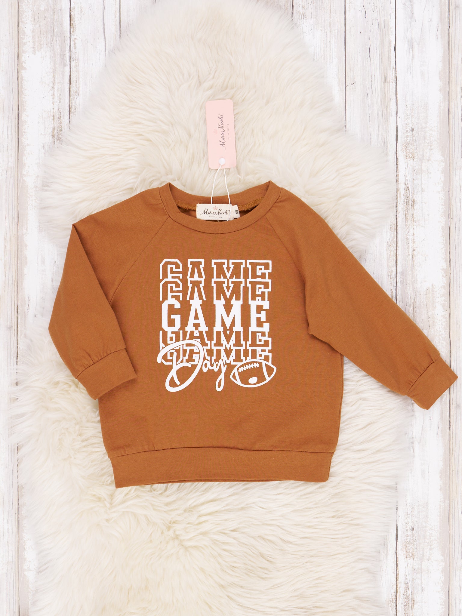 This Bronze Game Day Crewneck is the perfect jersey for football-loving fanatics. Gender-neutral and classic, it's the perfect companion for any game day - whether you're watching from the sidelines or the couch. Score big with this crewneck! Go, team! đ
