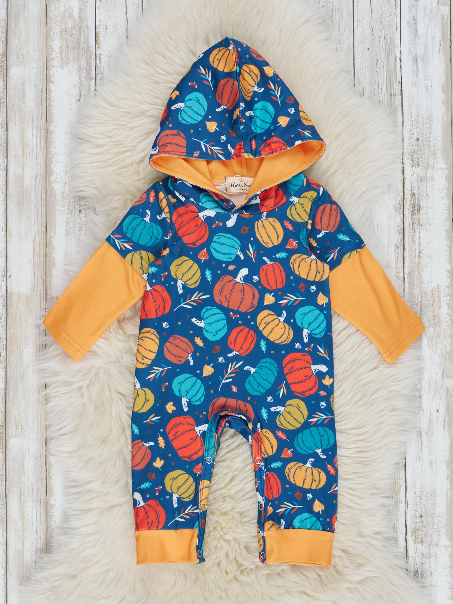 Bright Pumpkin Joy Hooded Romper
