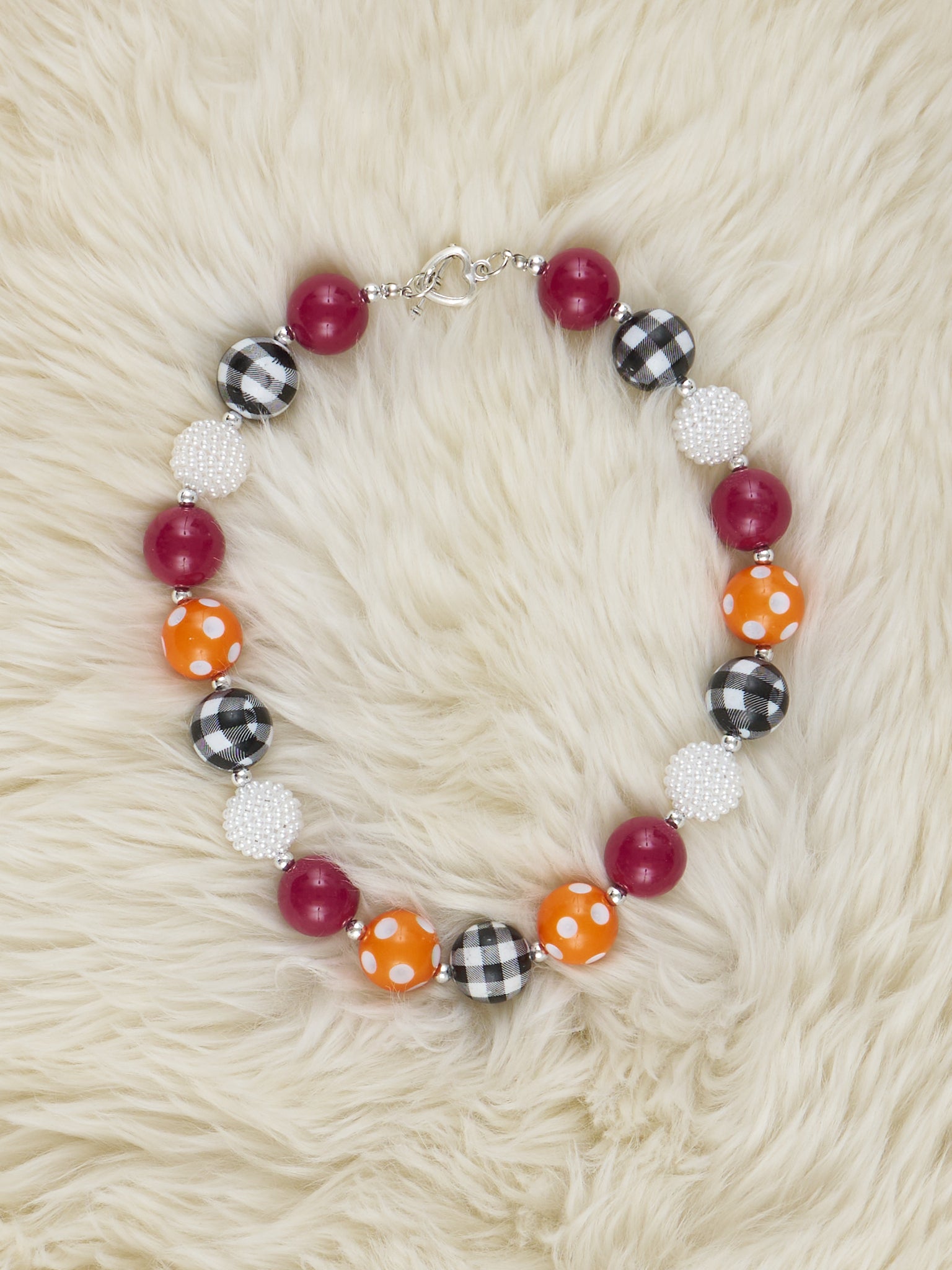 Orange Dot & Black Gingham Bubblegum Necklace