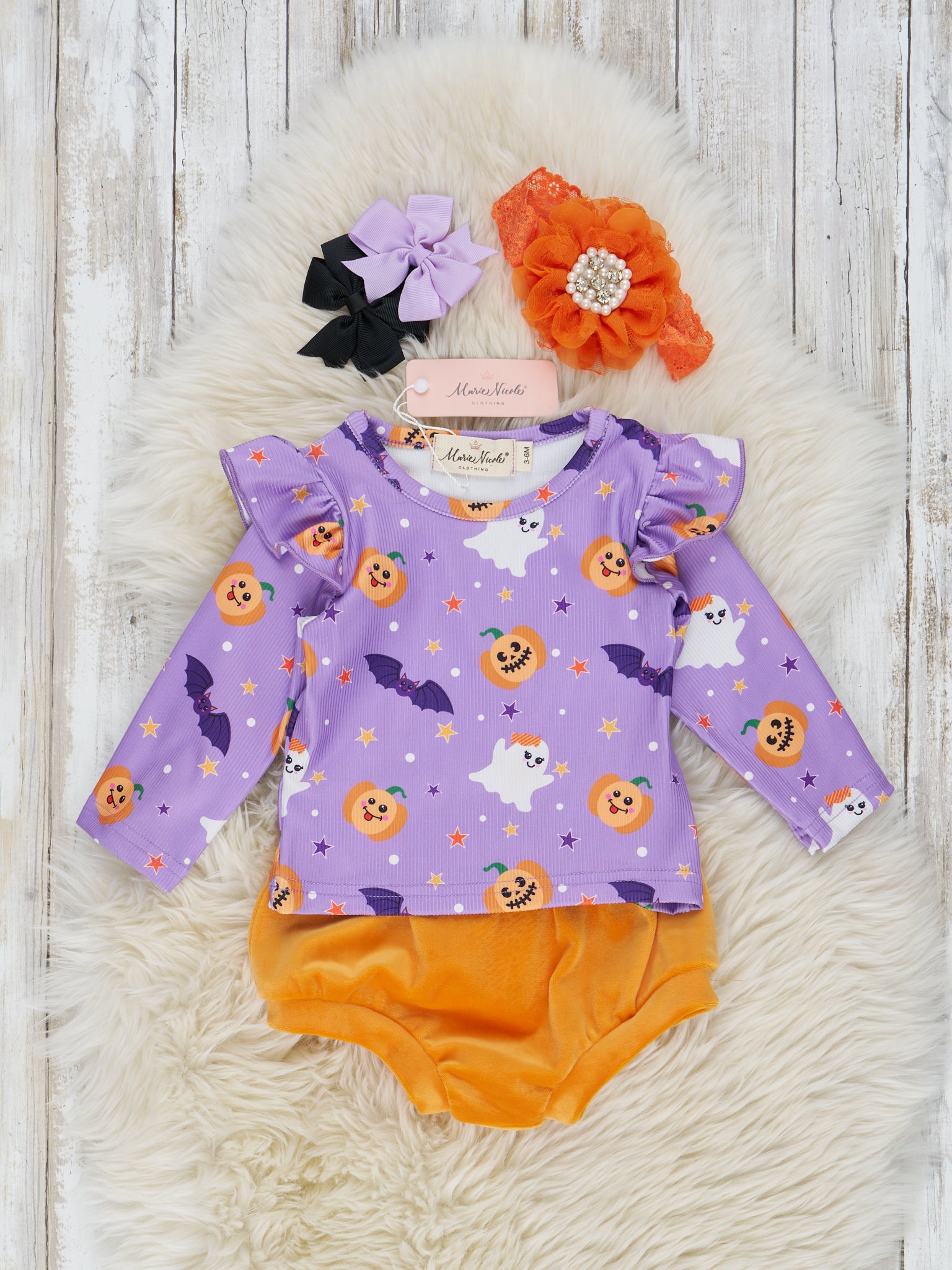 Purple Ghosts & Bats Velvet Bloomers Outfit