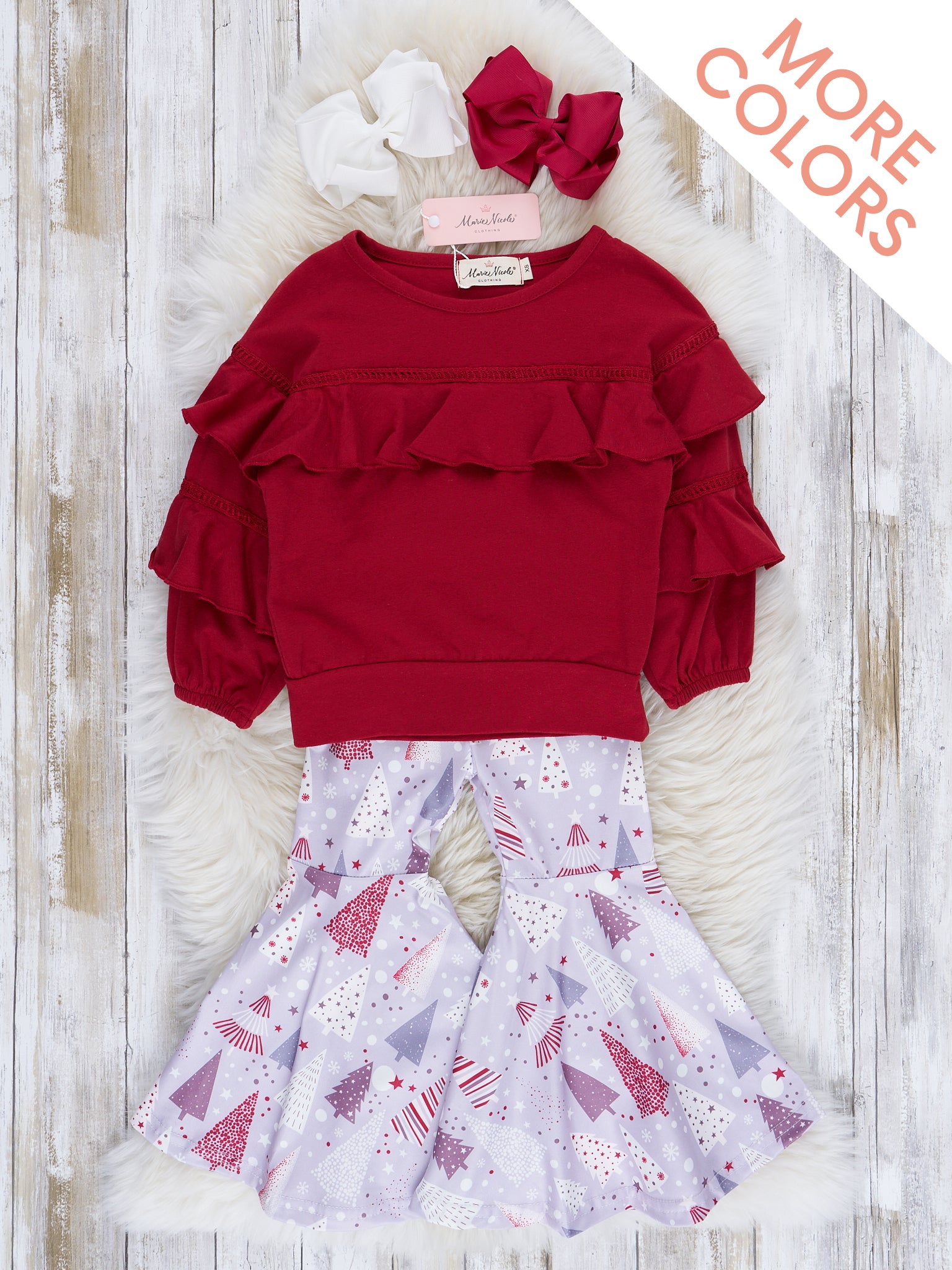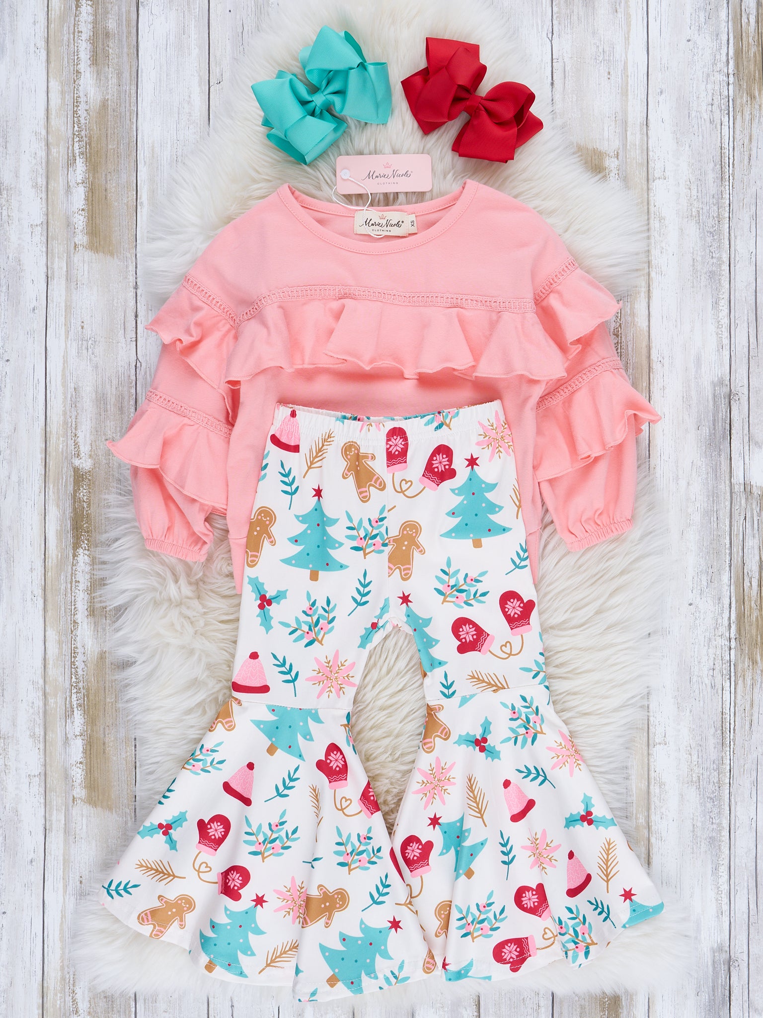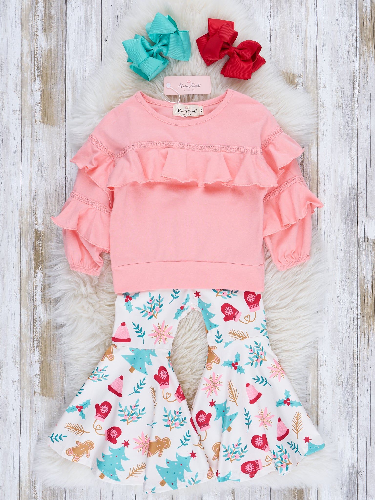 Wonderful Christmas Time Ruffle Bell Bottom Outfit
