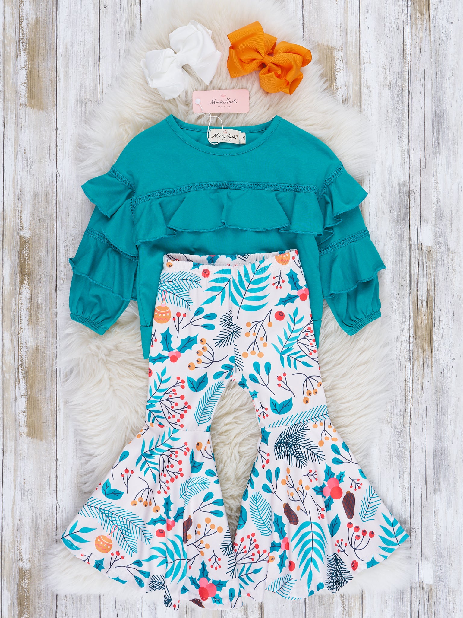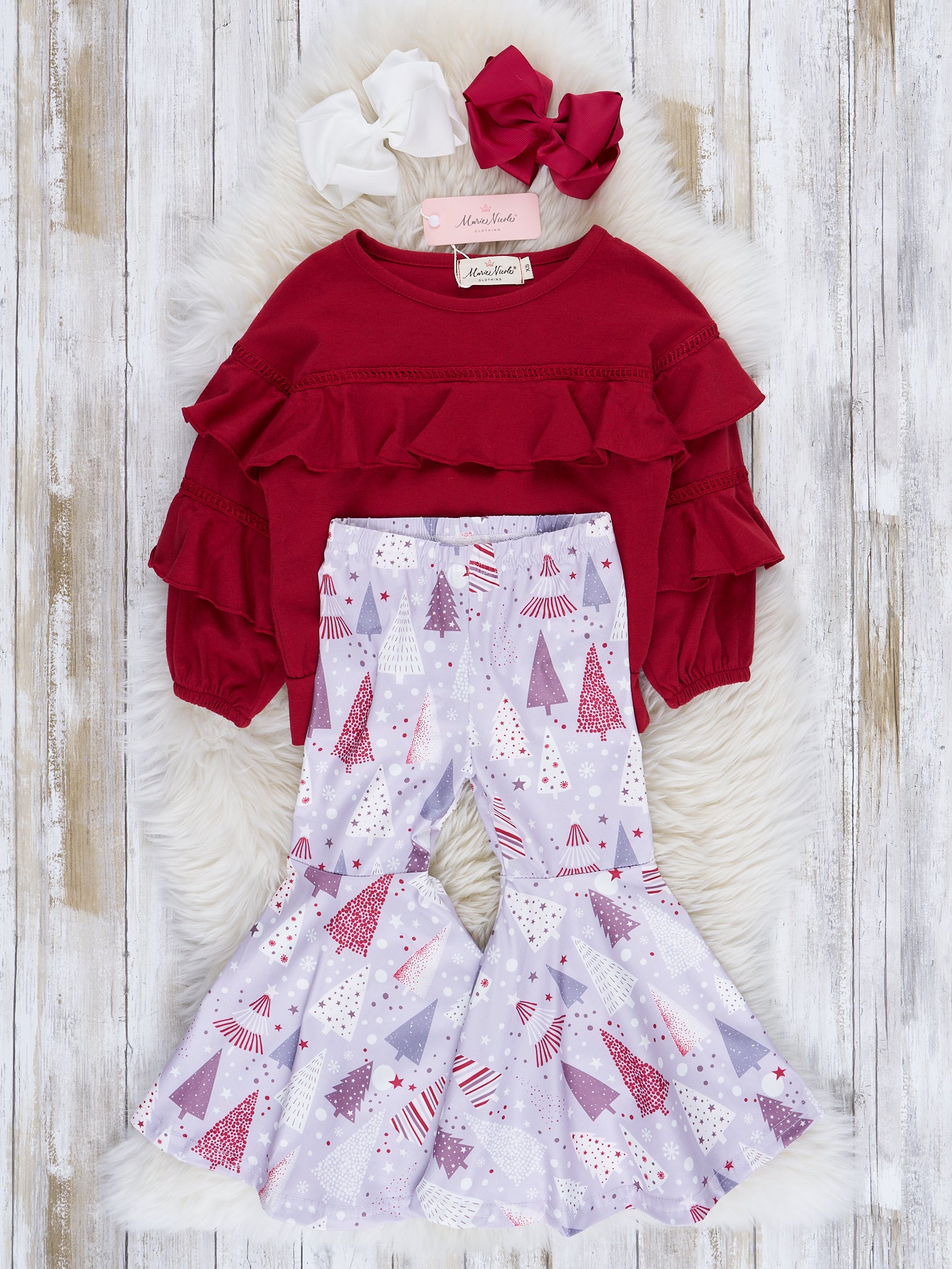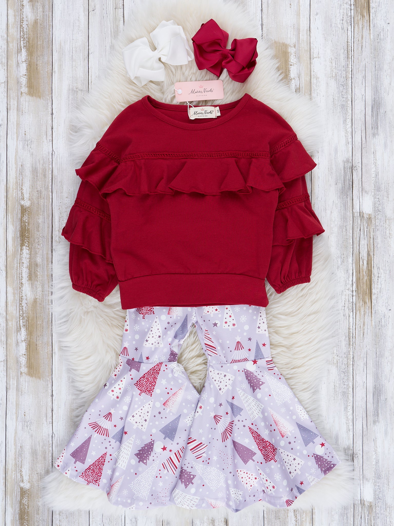 Wonderful Christmas Time Ruffle Bell Bottom Outfit