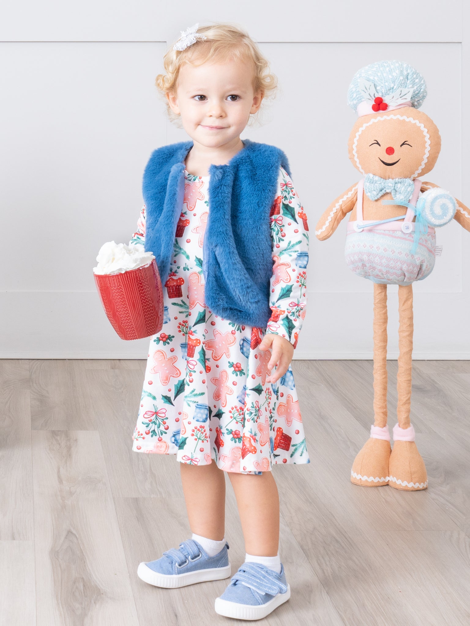 Gingerbread Garden Swing Dress w/ Faux Fur Vest