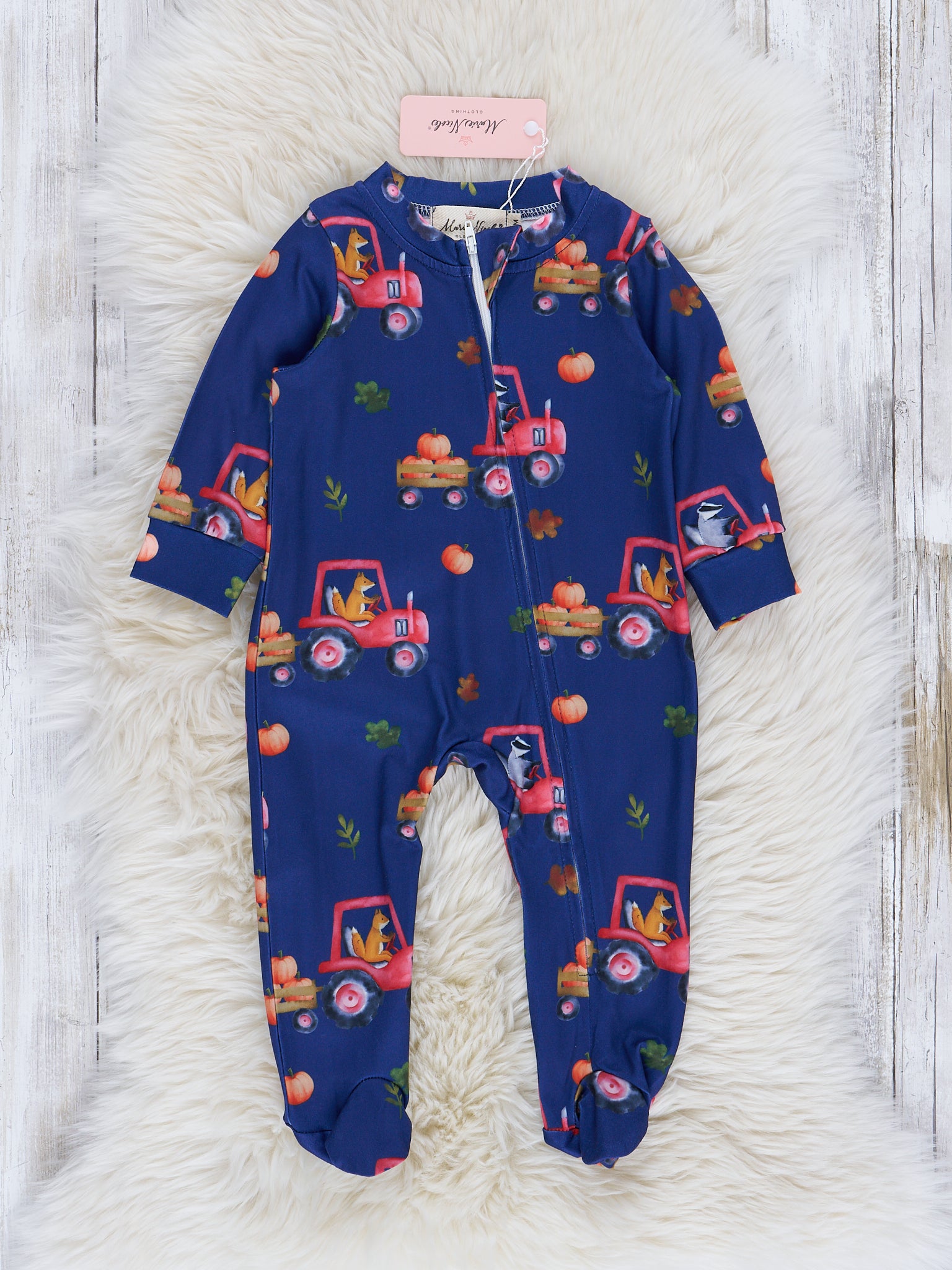 Navy & Orange Trucks Footed Sleeper Pajamas