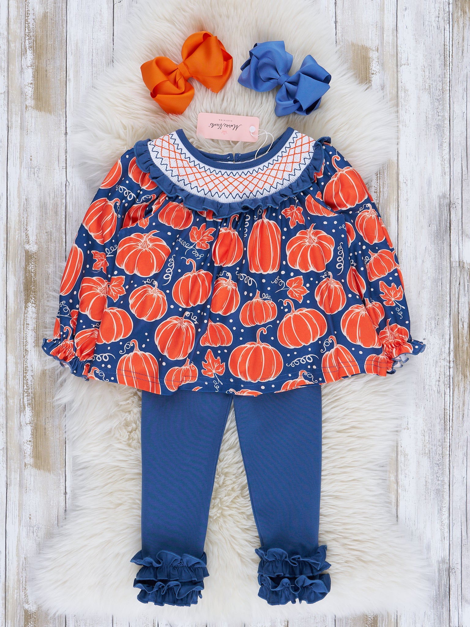 Teal Pumpkin & Orange Stripes Bell Bottom Outfit