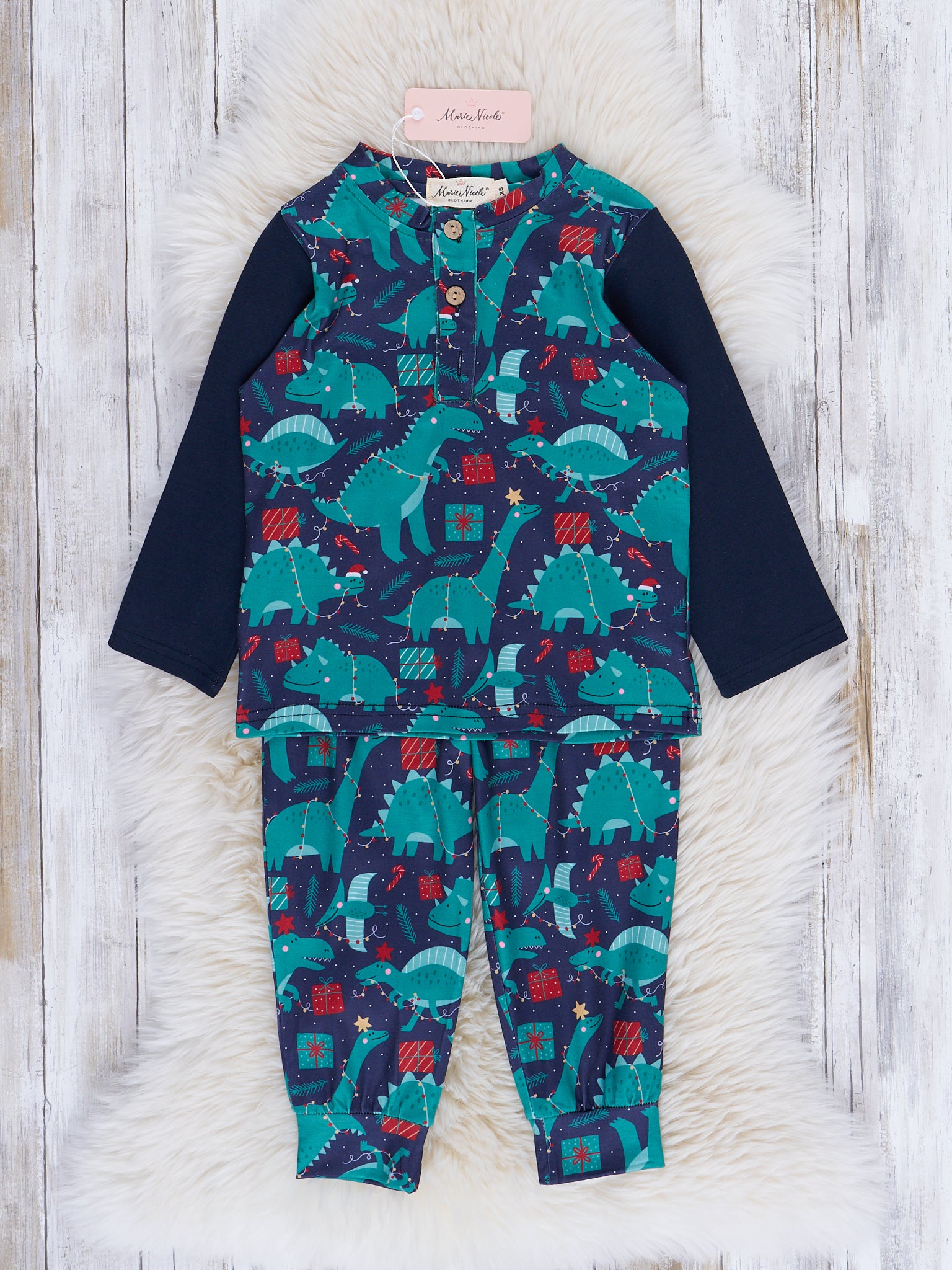 Green & Navy Dino Wonderland Sleeper Pajamas