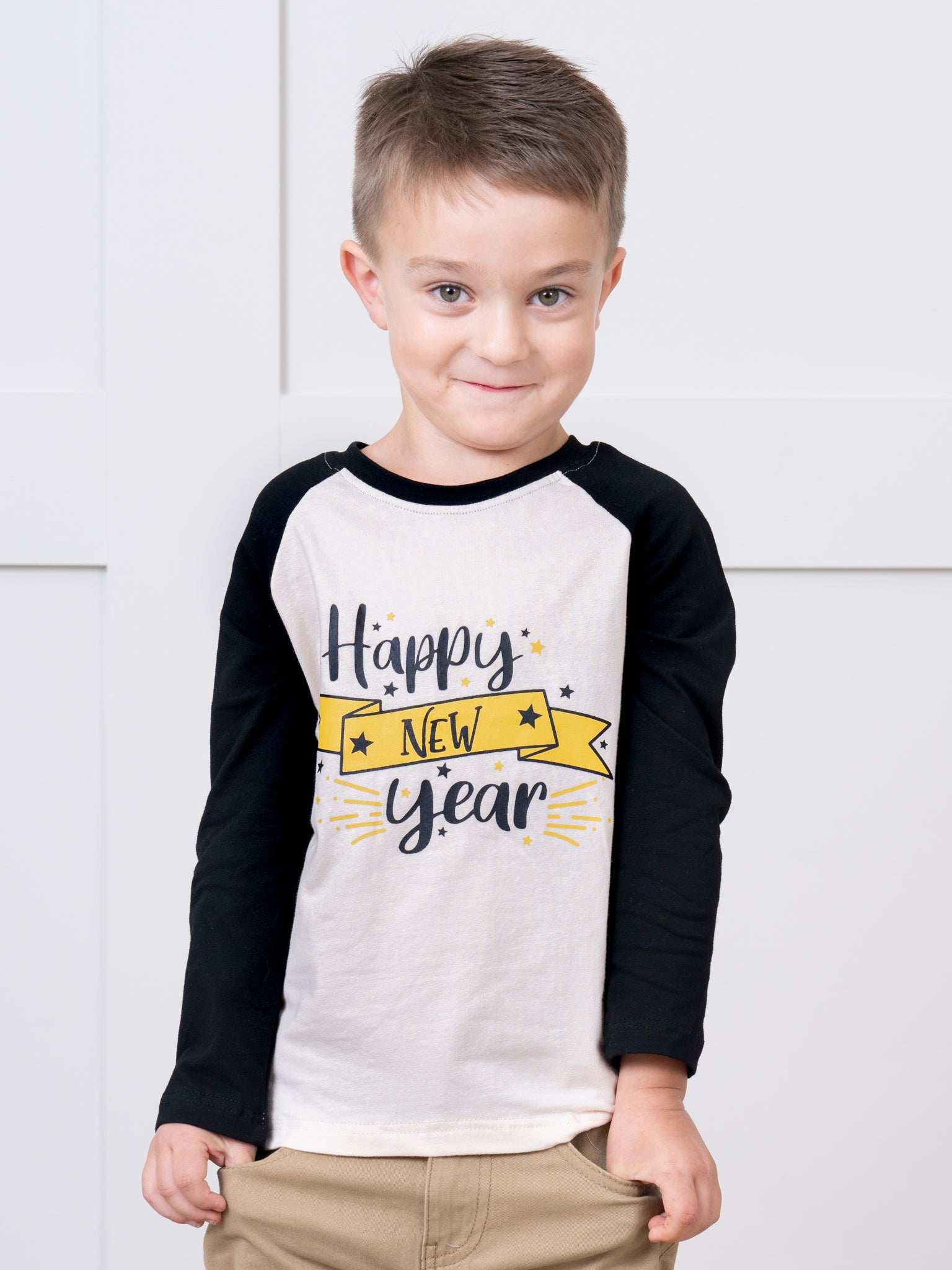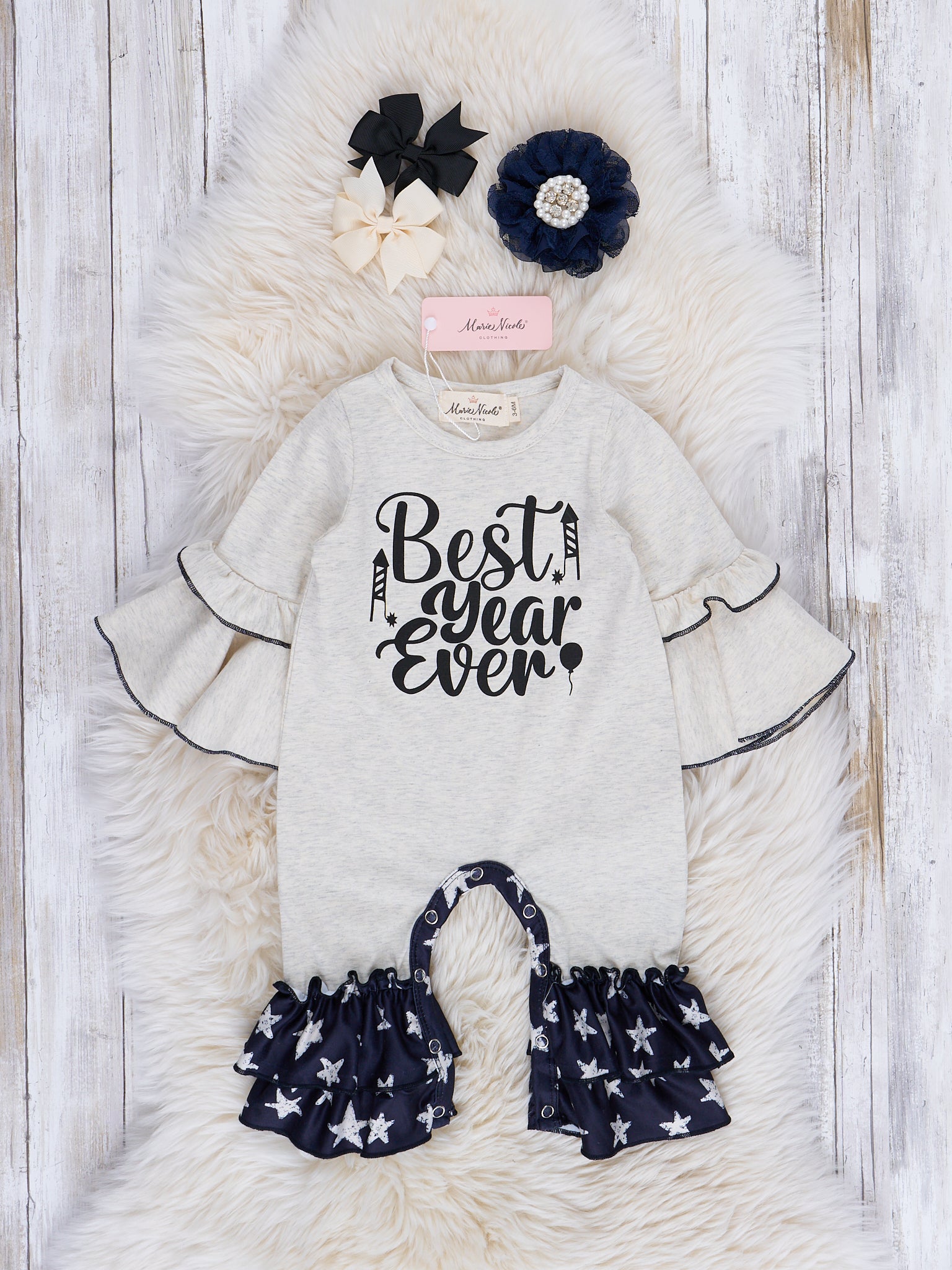 Black & White "Best Year Ever" Bell Sleeve Ruffle Romper