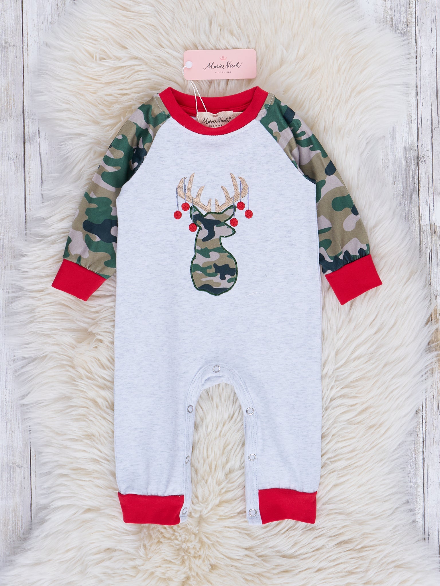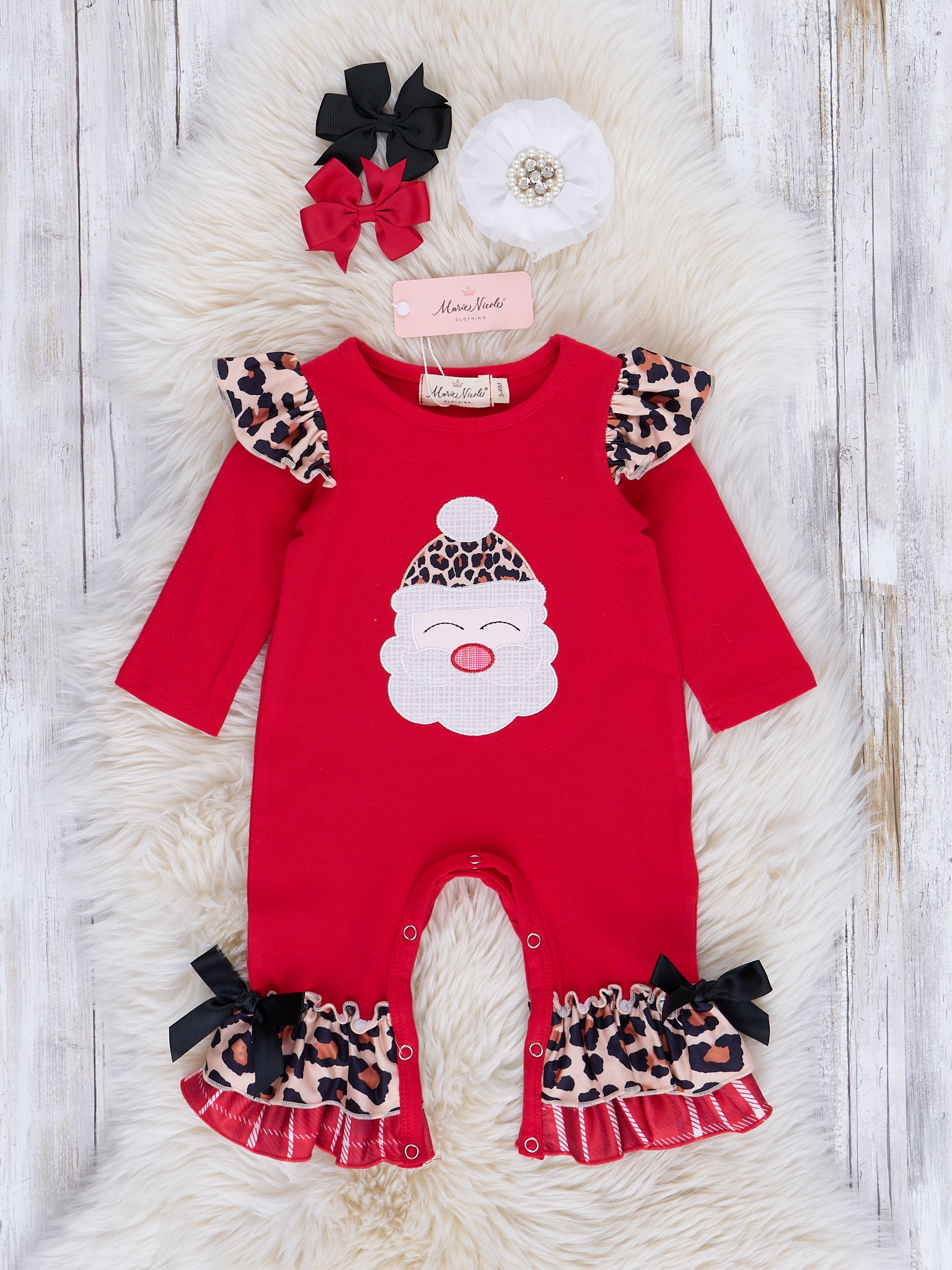 Red Mixed Print Embroidered Santa Ruffle Romper