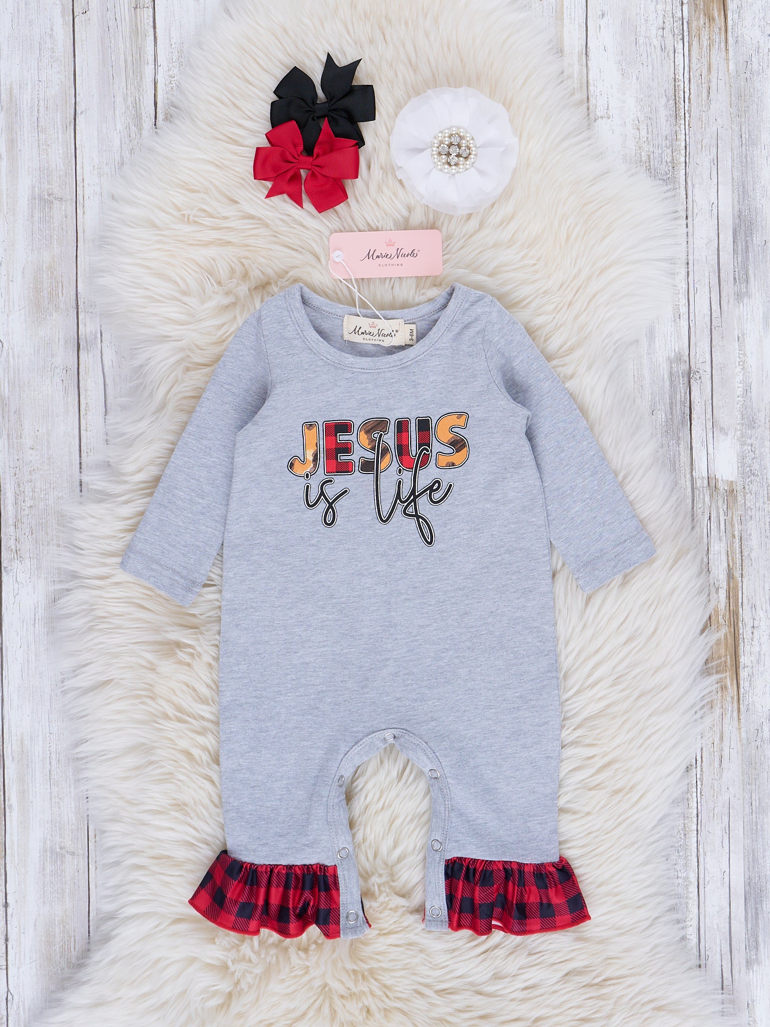 Buffalo Plaid "Jesus is Life" Ruffle Romper