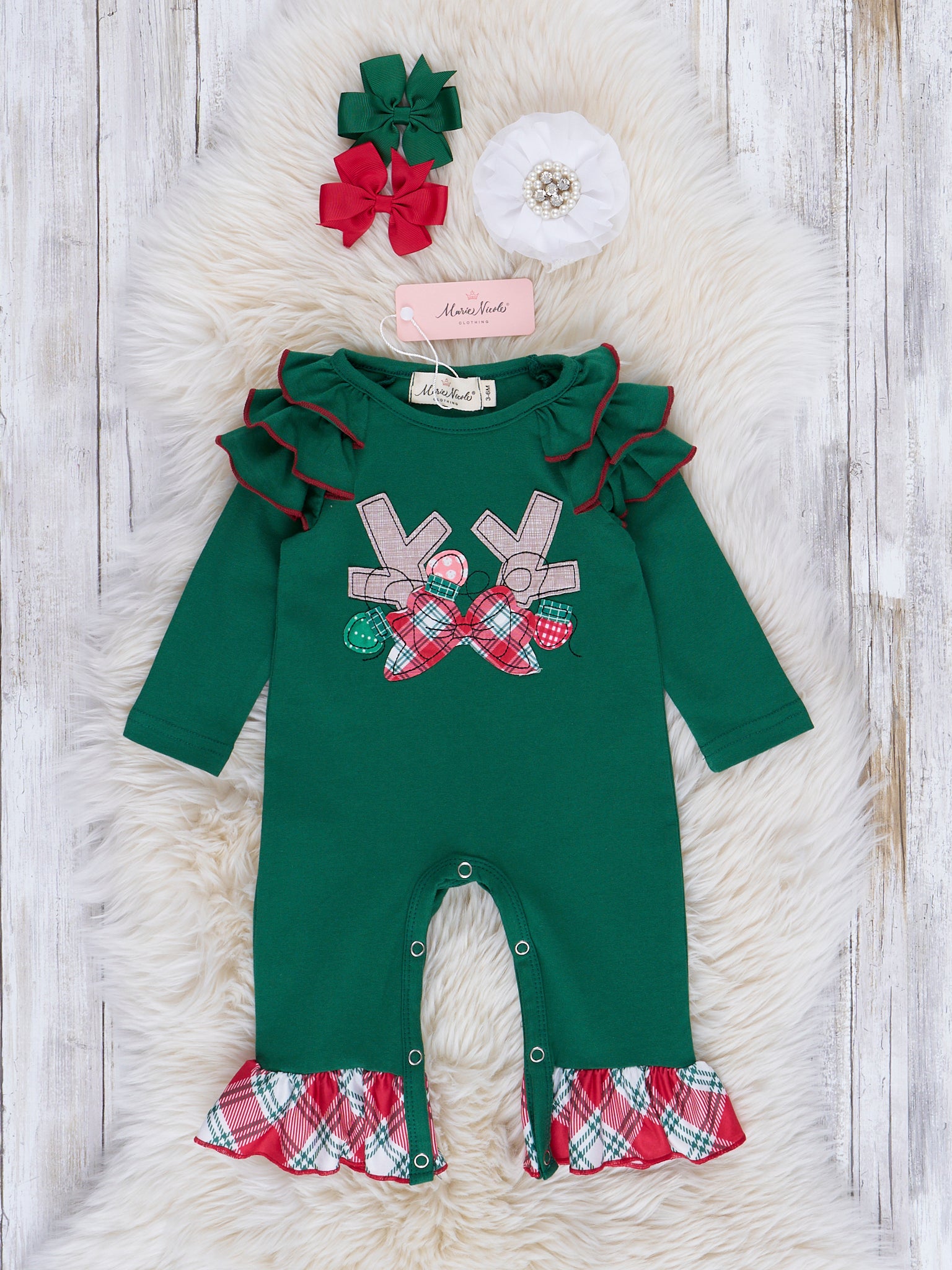 Green Buffalo Plaid Embroidered Gingerbread Ruffle Romper