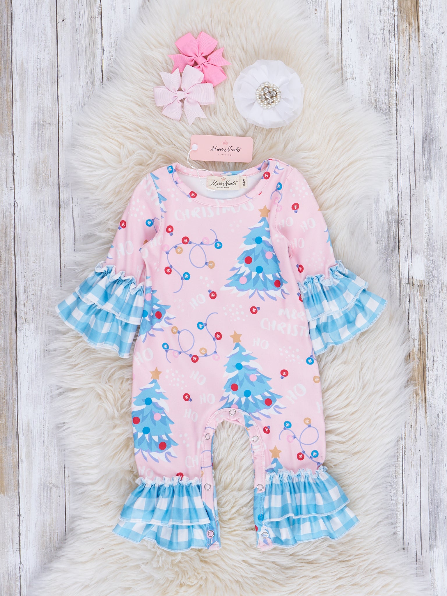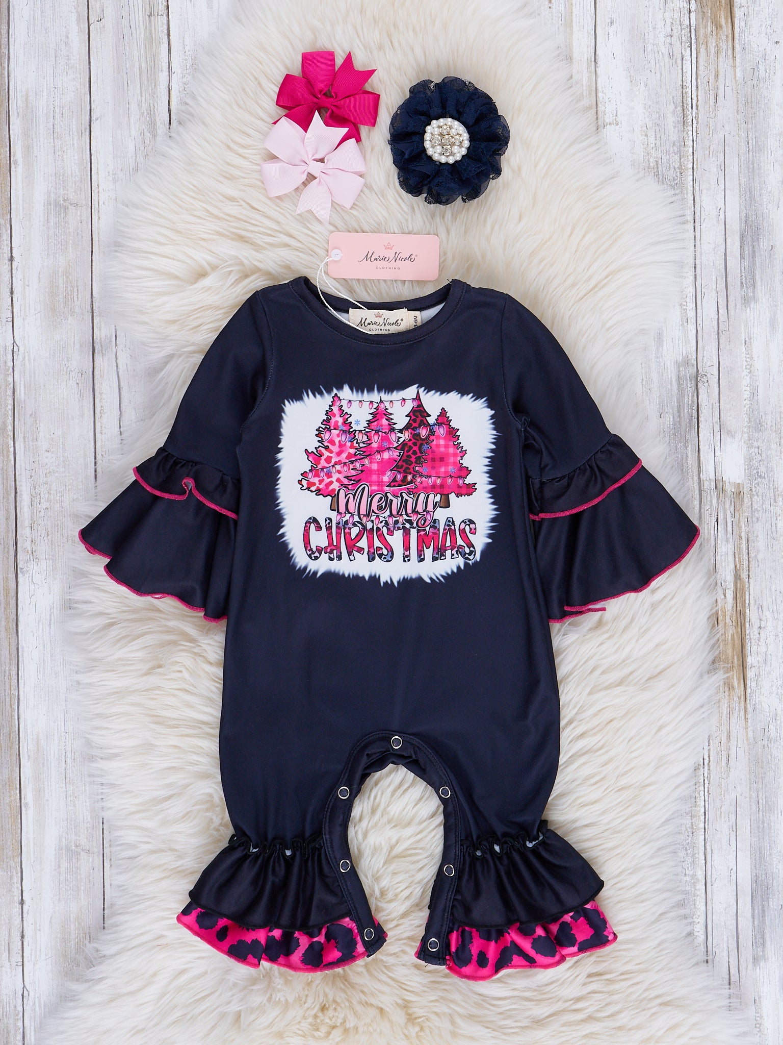Pink Leopard "Merry Christmas" Ruffle Romper