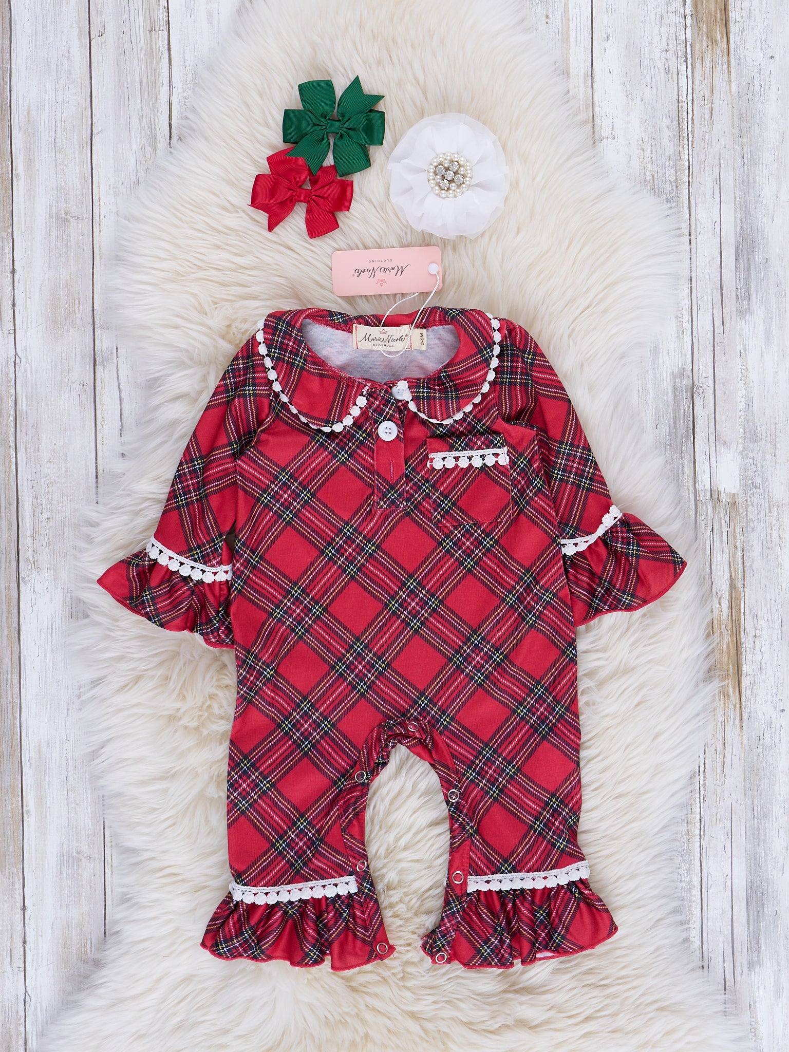 Red & Black Tartan Ruffle Sleeper Pajamas