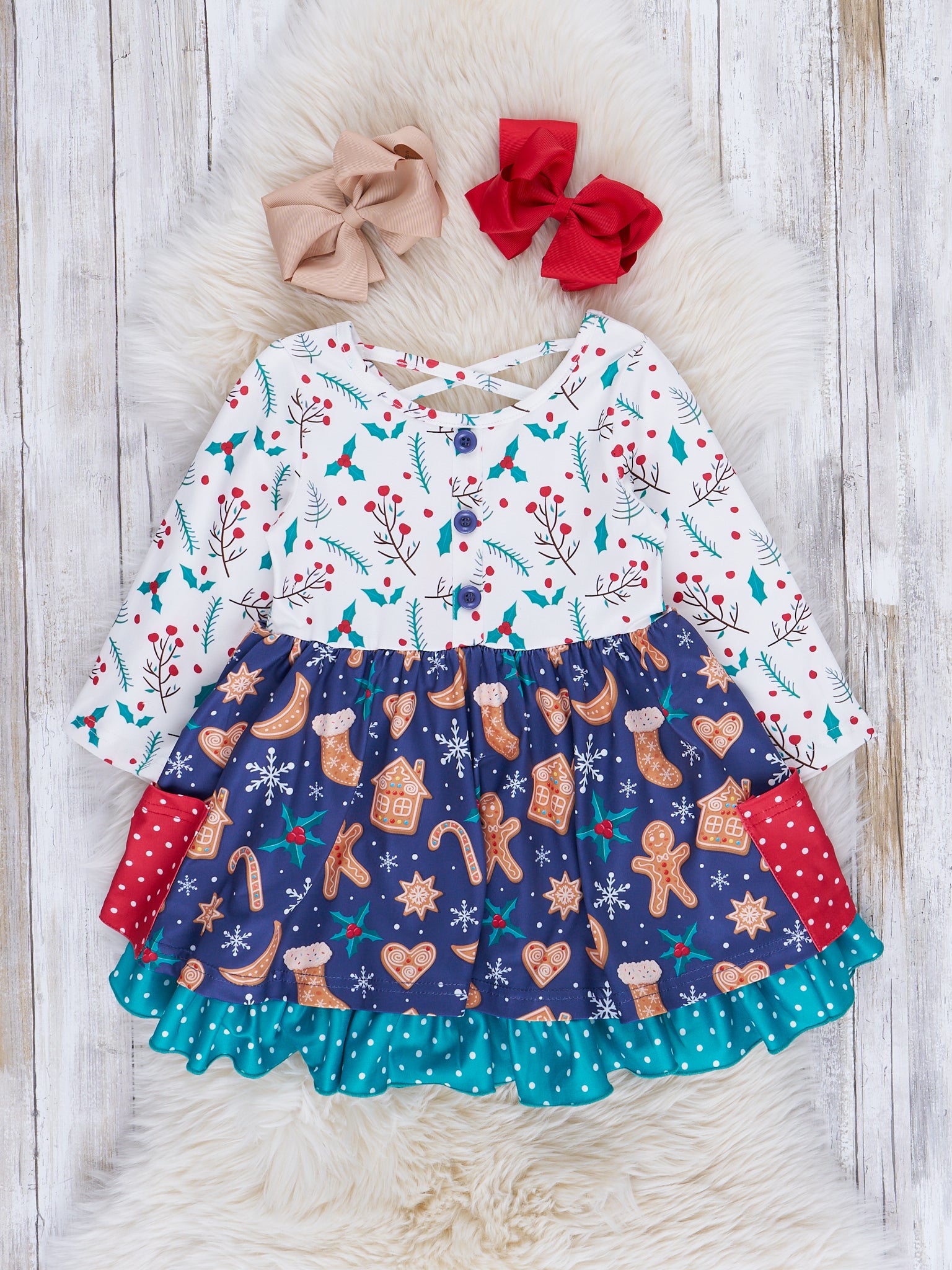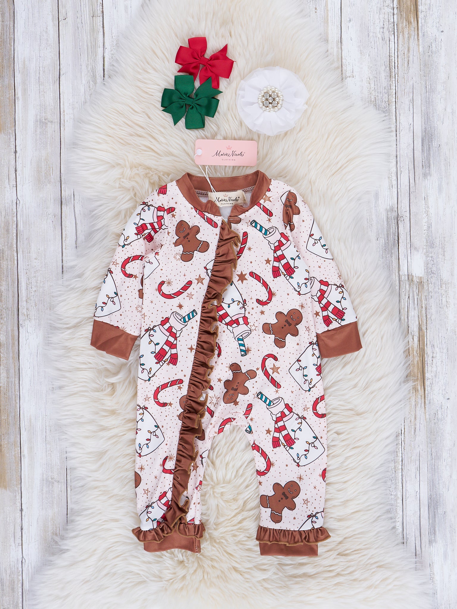 Milk & Gingerbread Cookies Ruffle Sleeper Pajamas