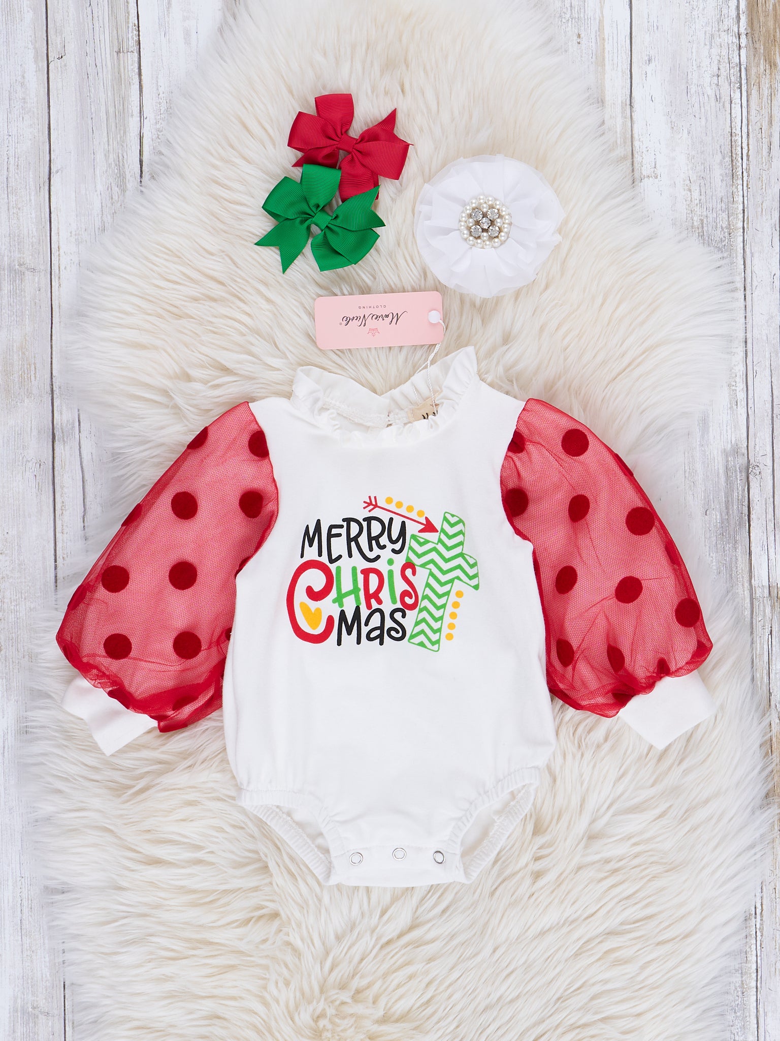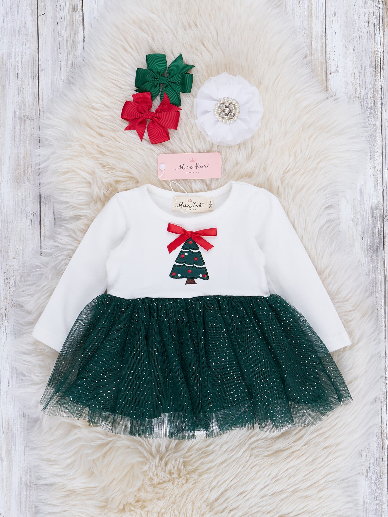 Red & Green Sparkle Tulle Romper w/ Skirt