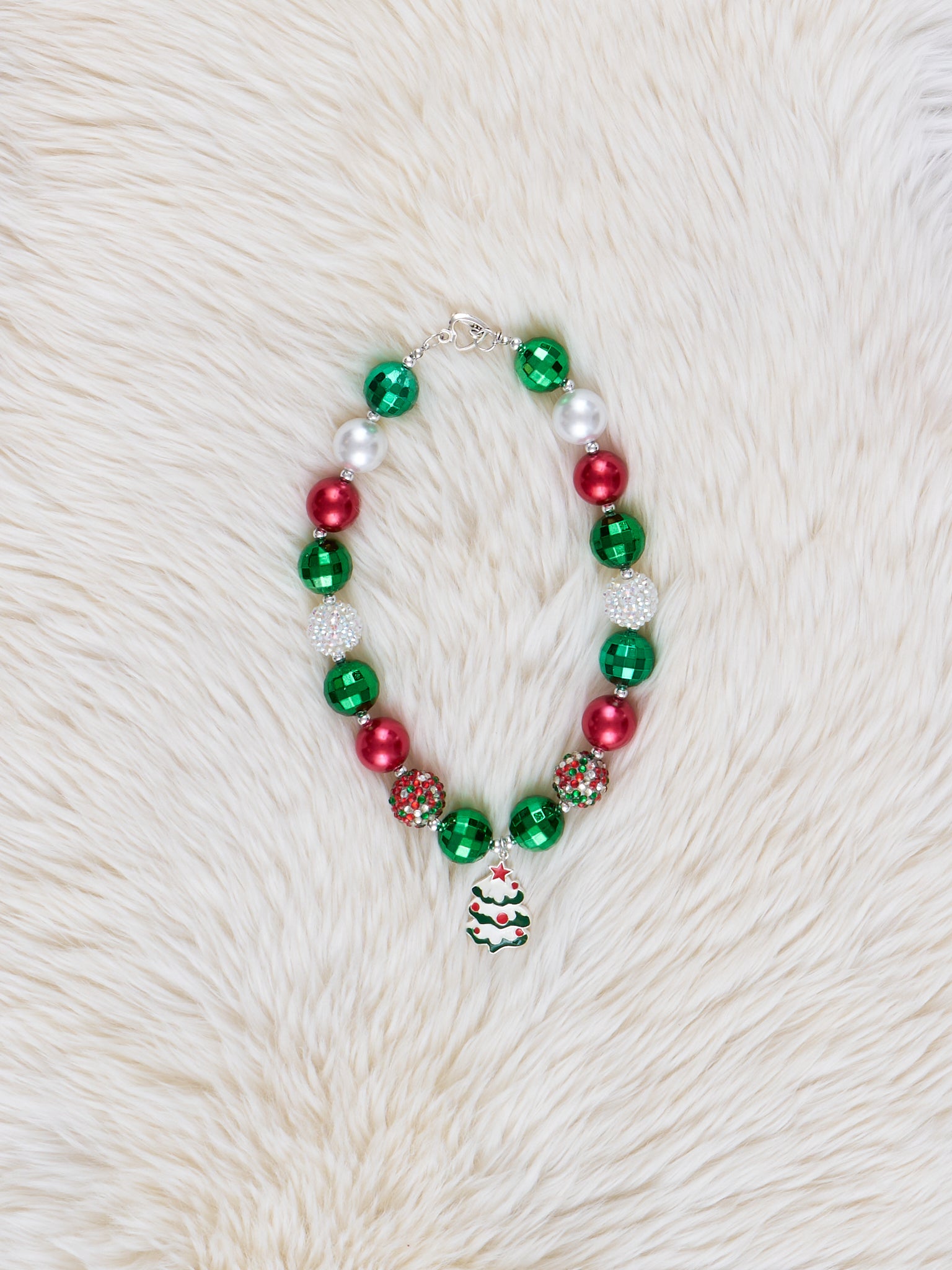 Red Pearl Christmas Tree Charm Bubblegum Necklace