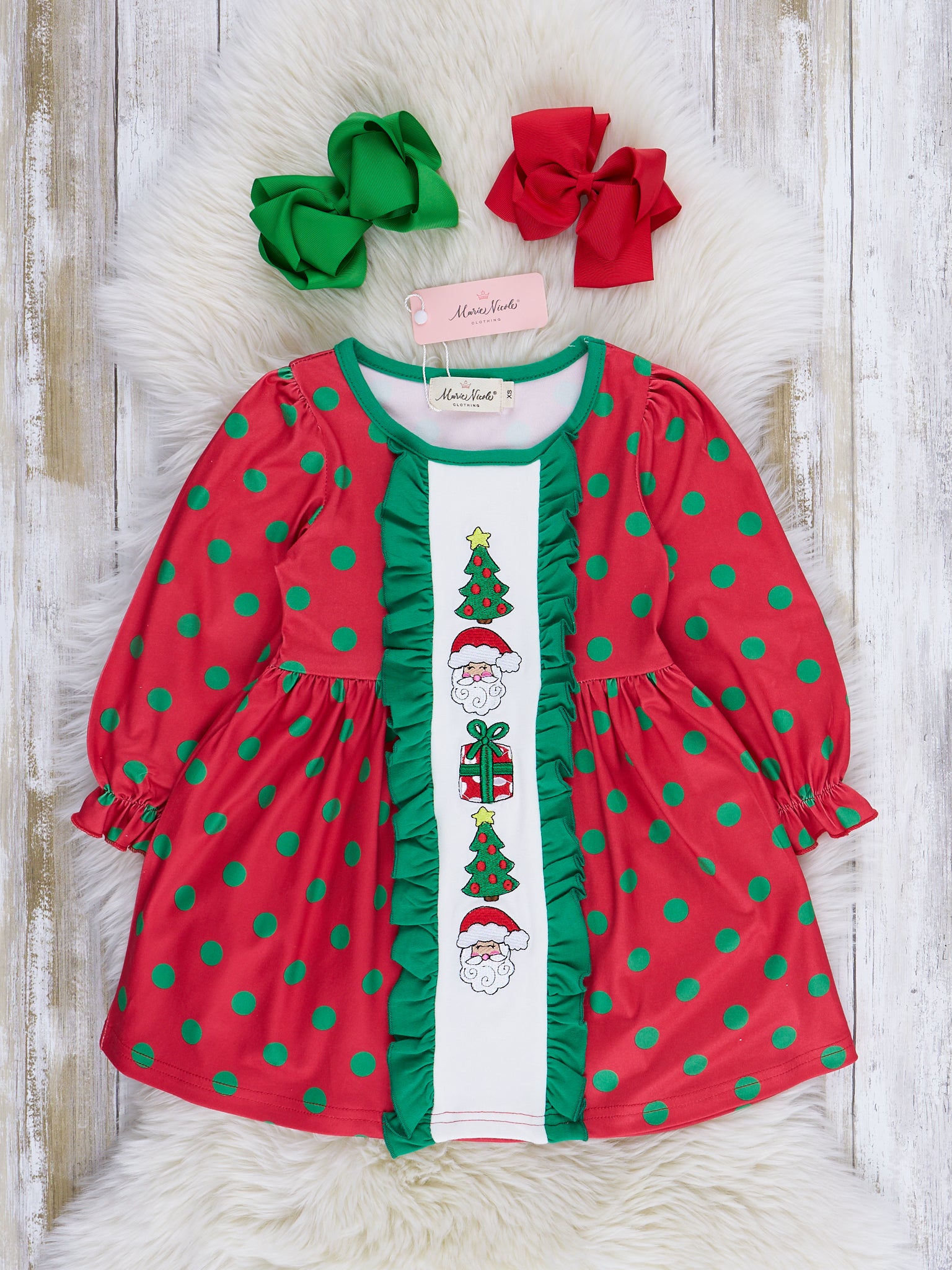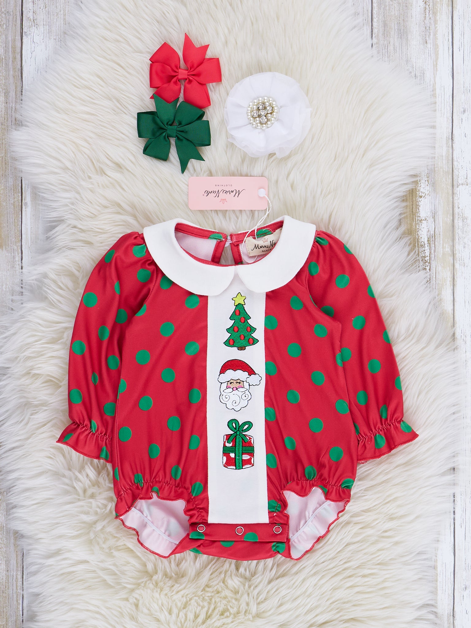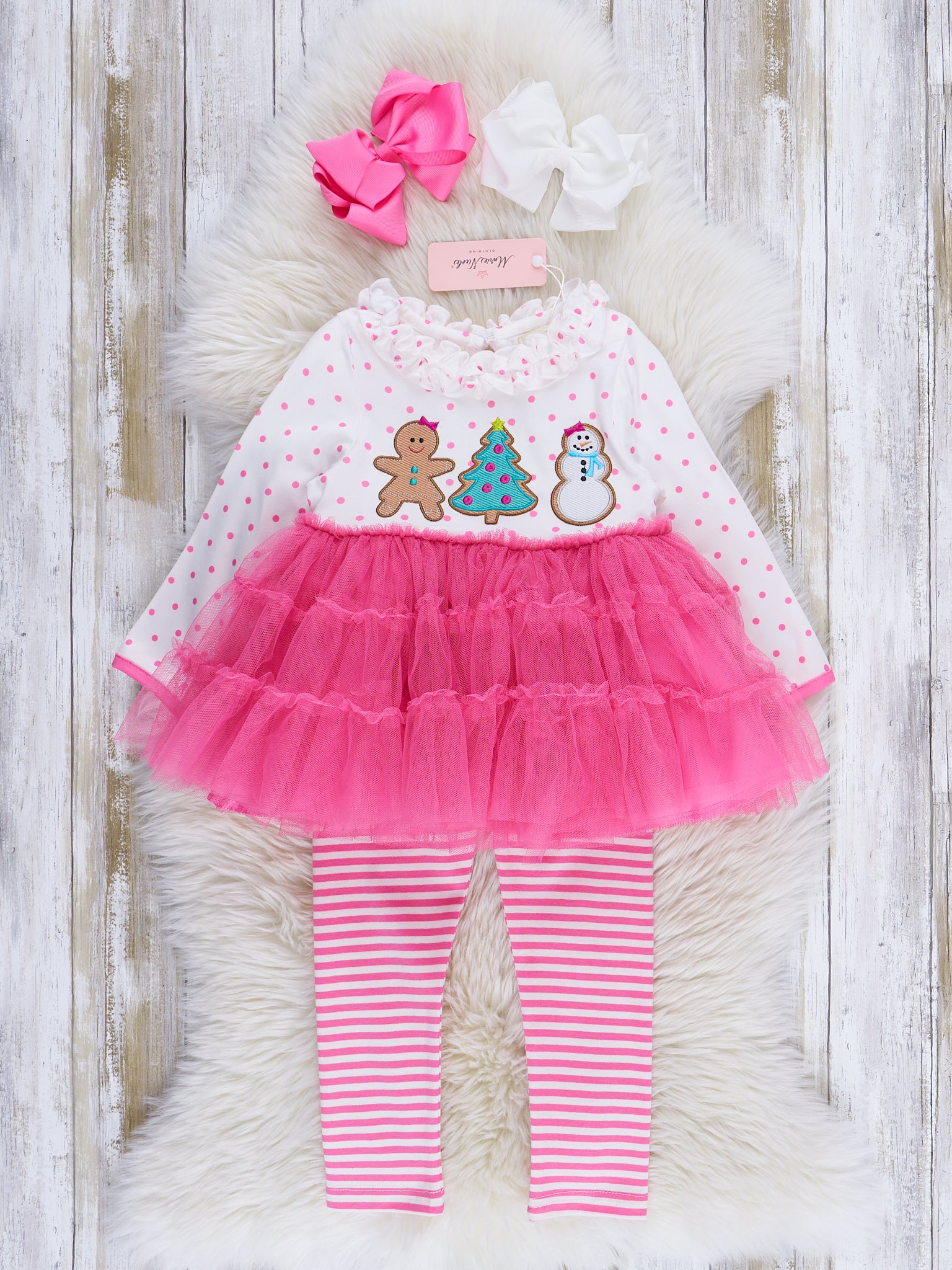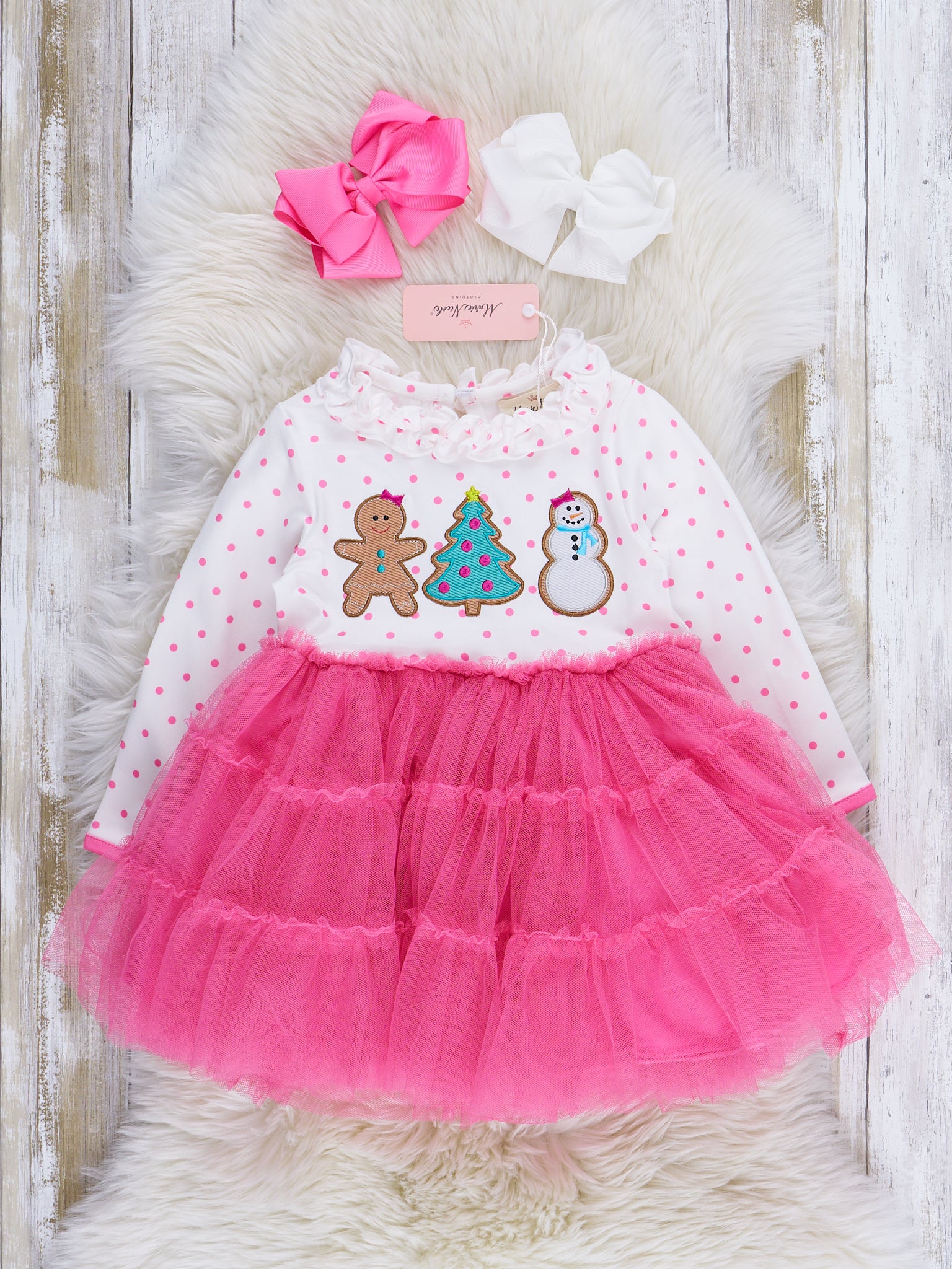 Pink Polka Dots Embroidered Christmas Tulle Outfit