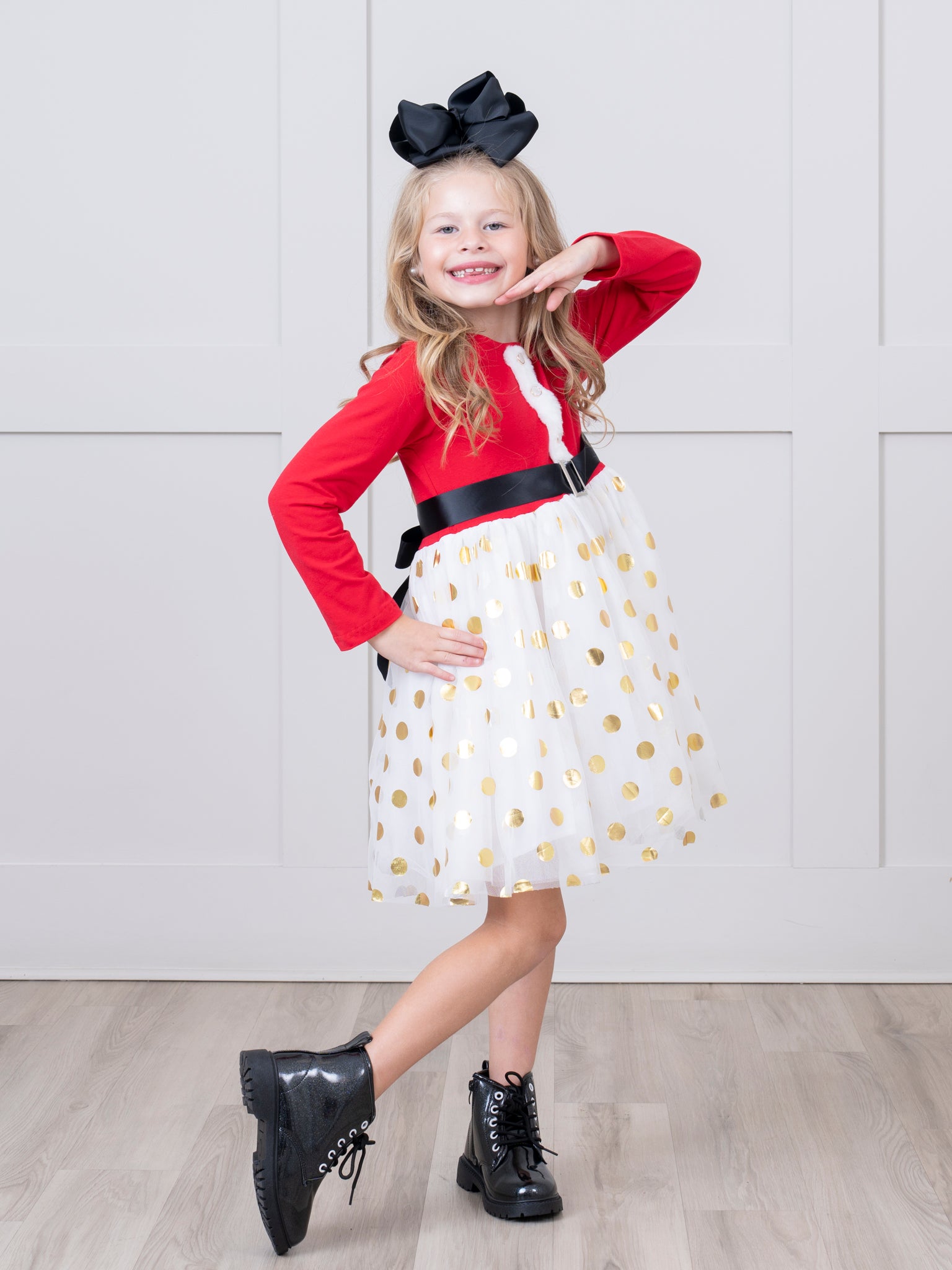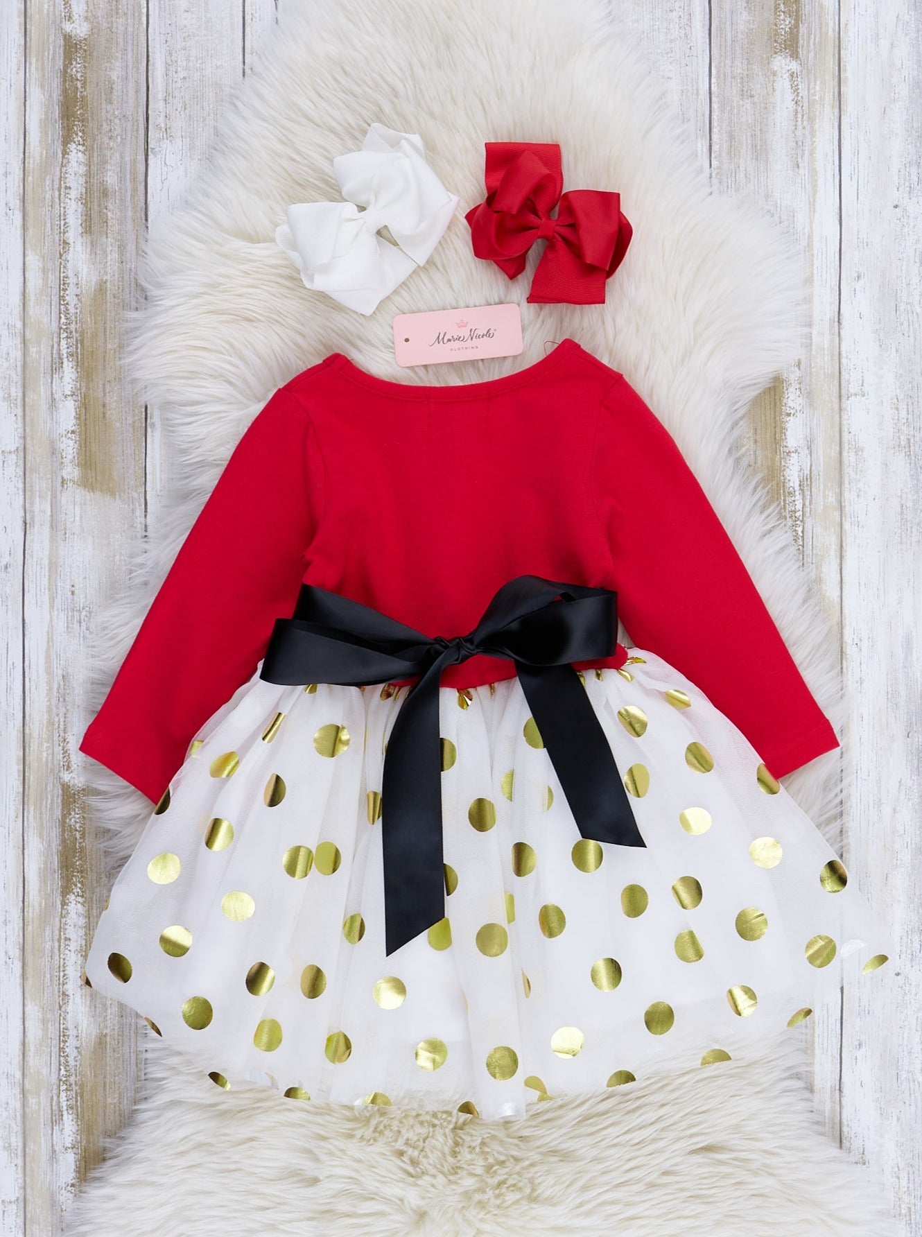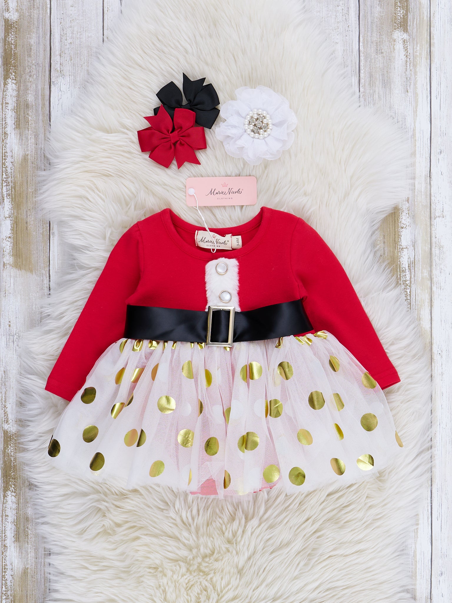 Pink Polka Dots Embroidered Christmas Tulle Outfit