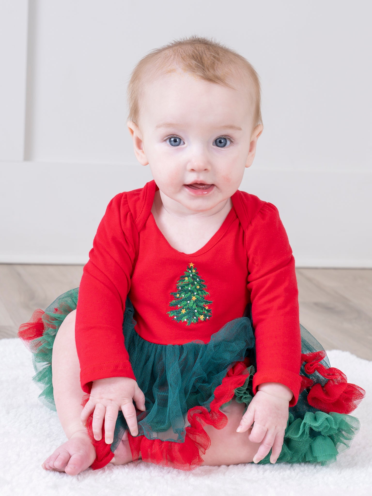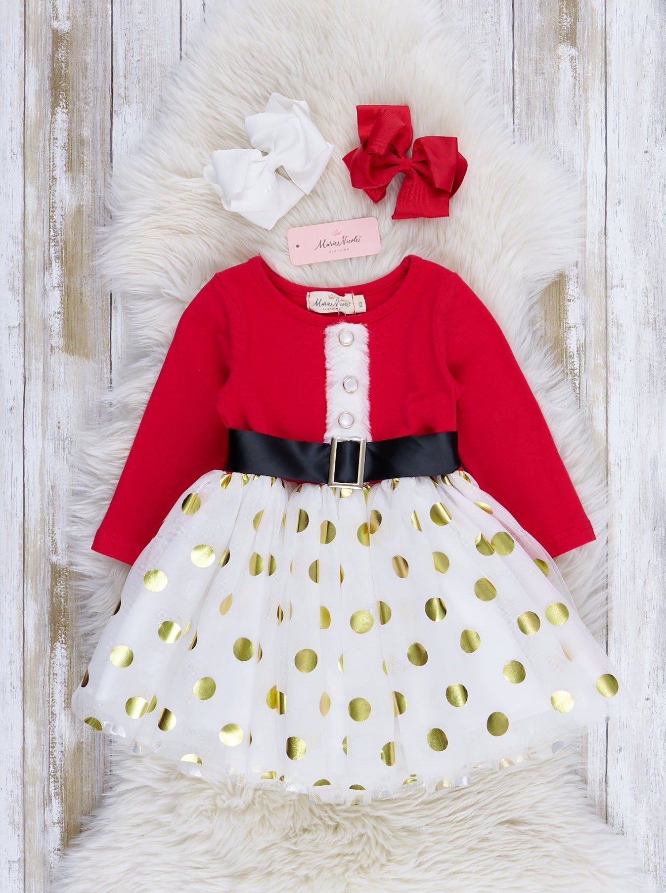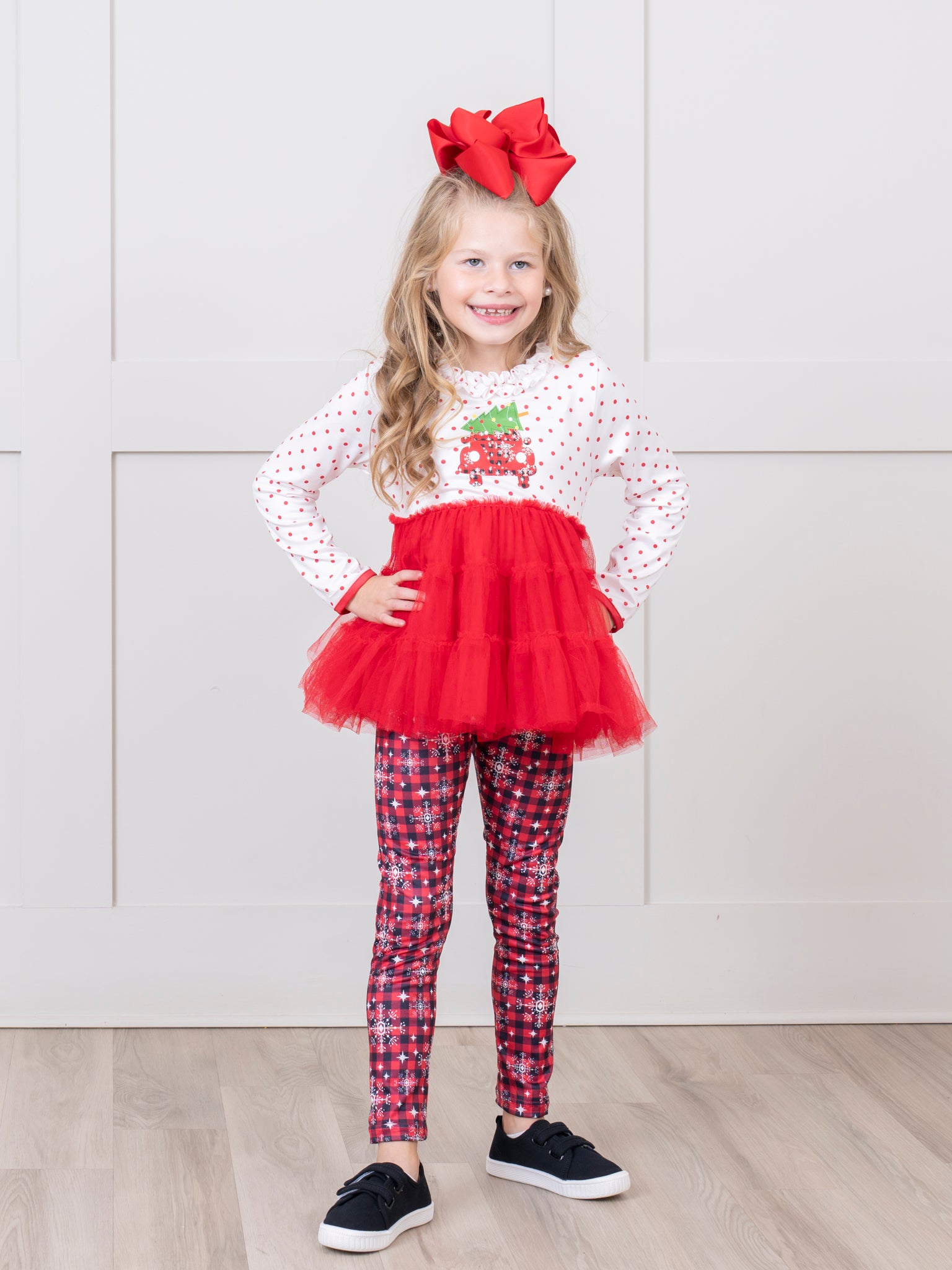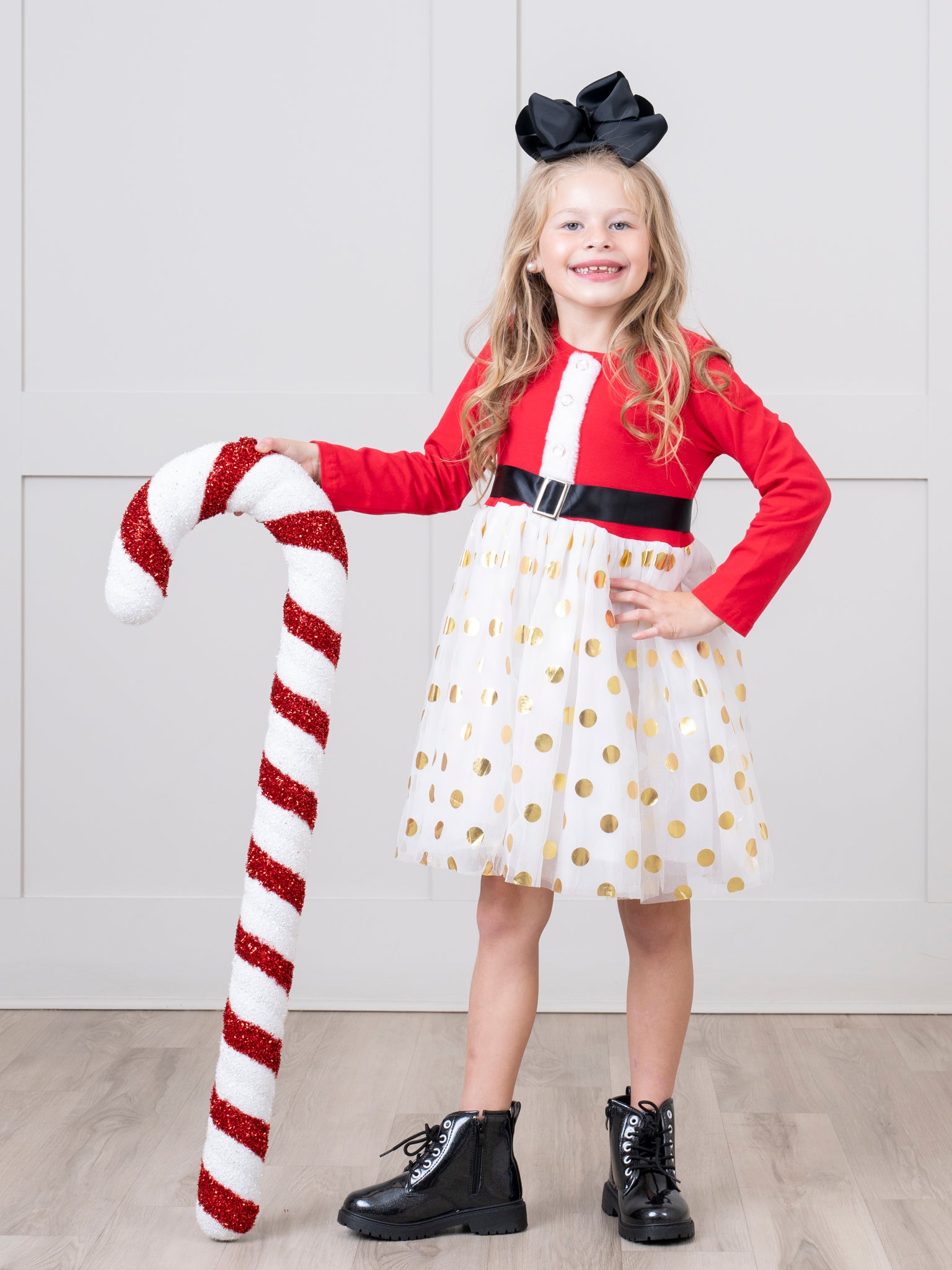 Pink Polka Dots Embroidered Christmas Tulle Outfit