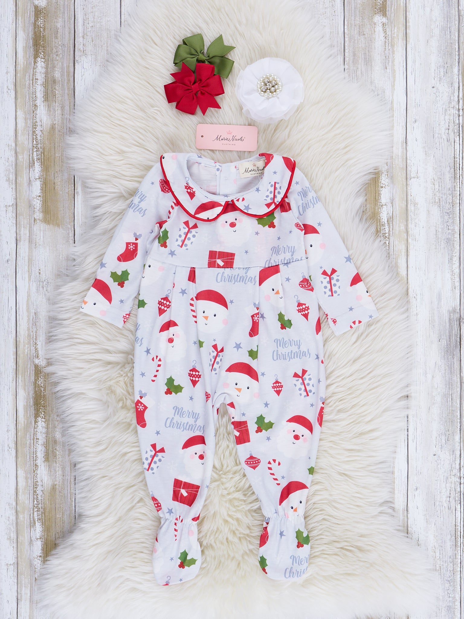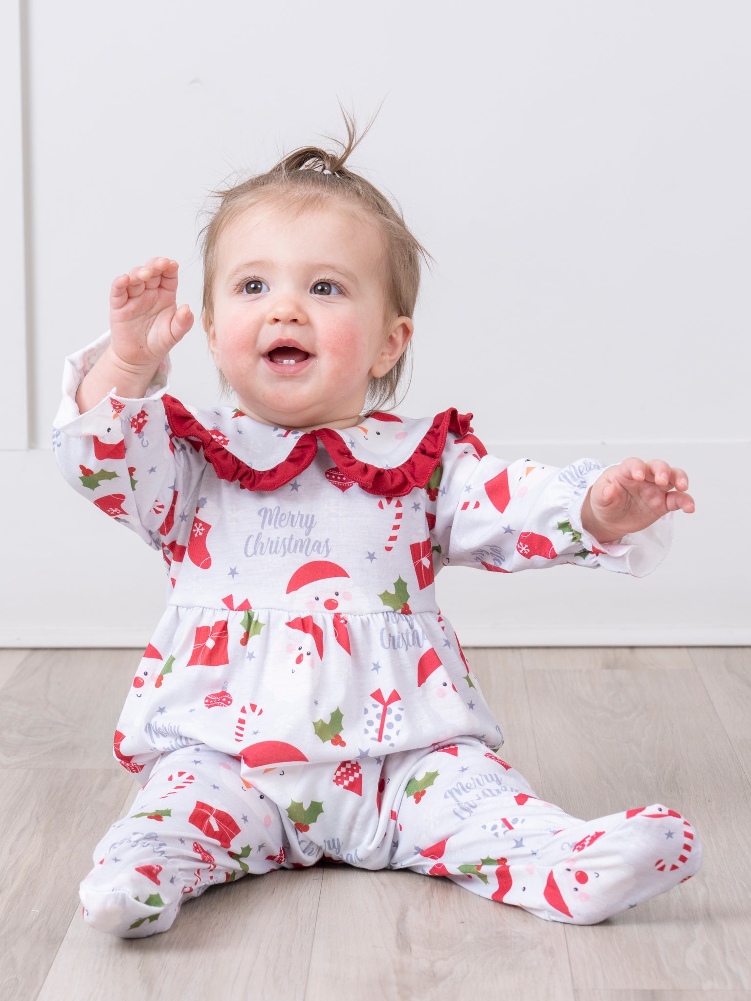 Grey & Red Holly Christmas Ruffle Footed Sleeper Pajamas