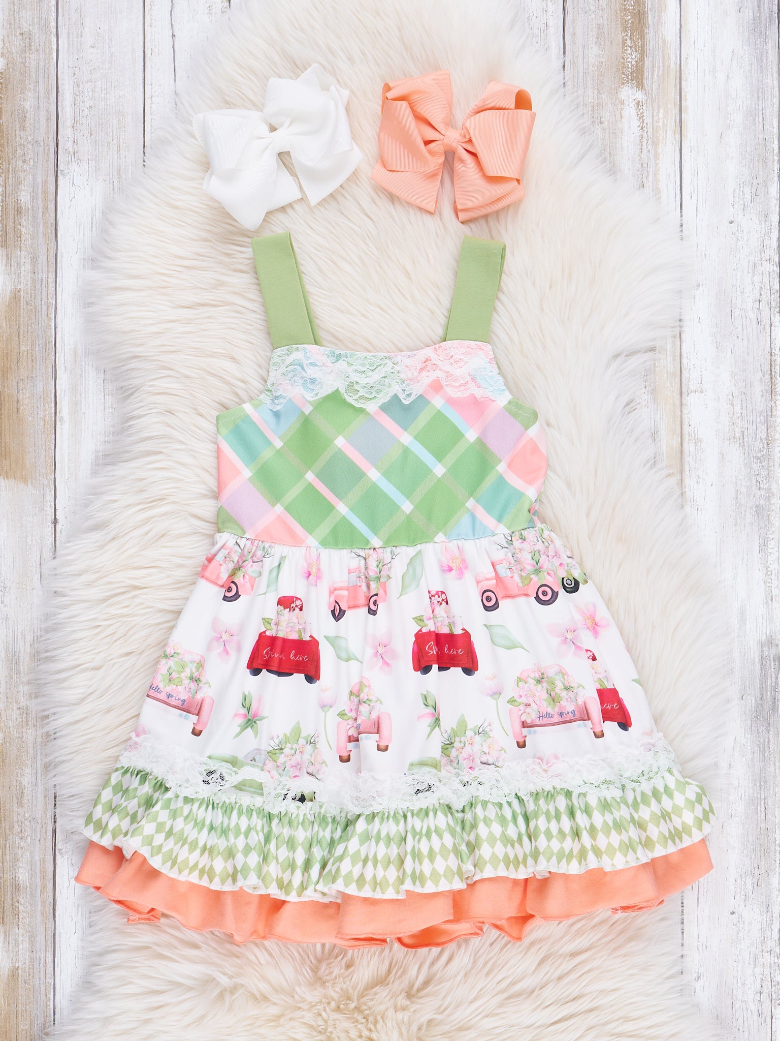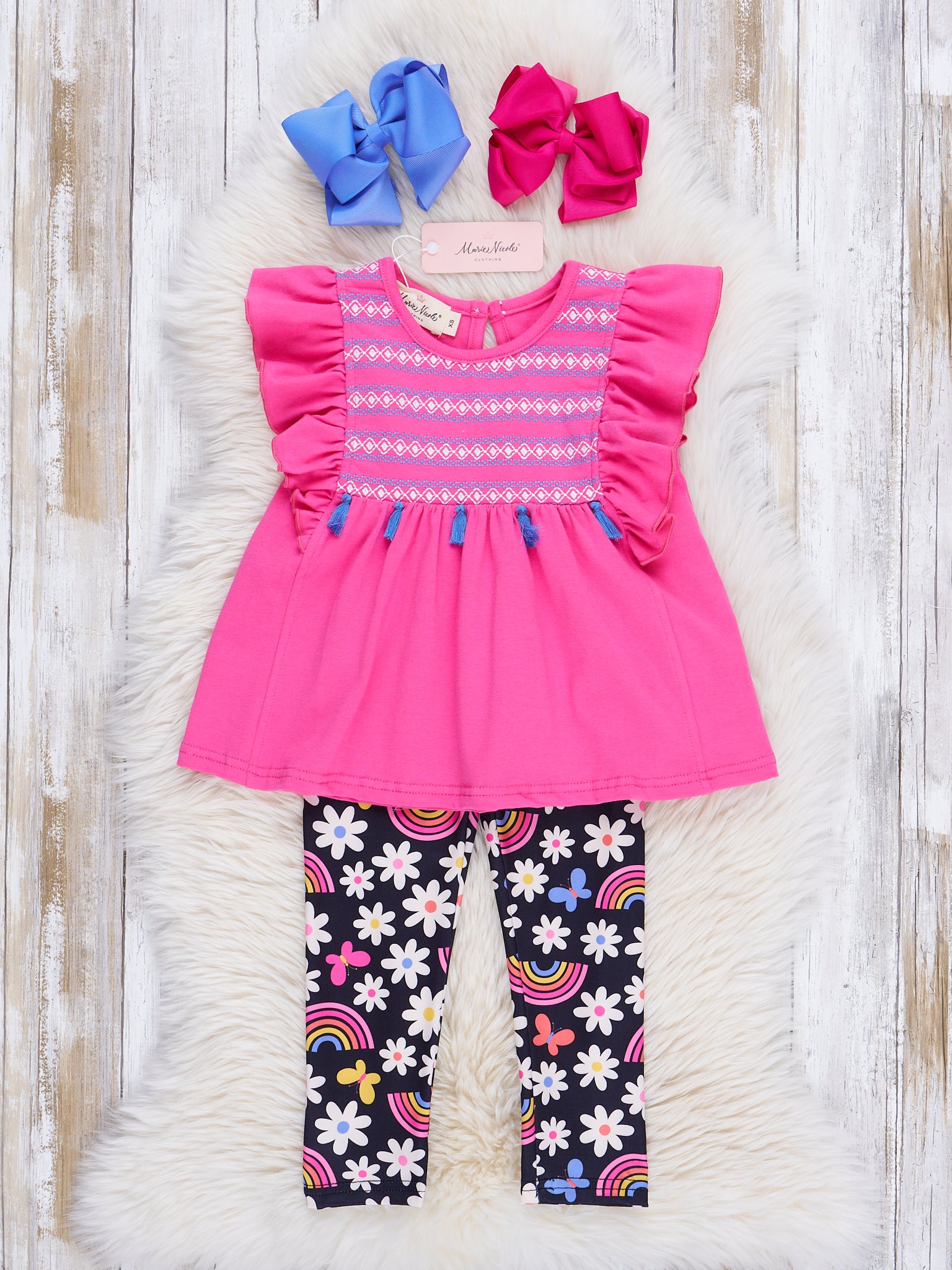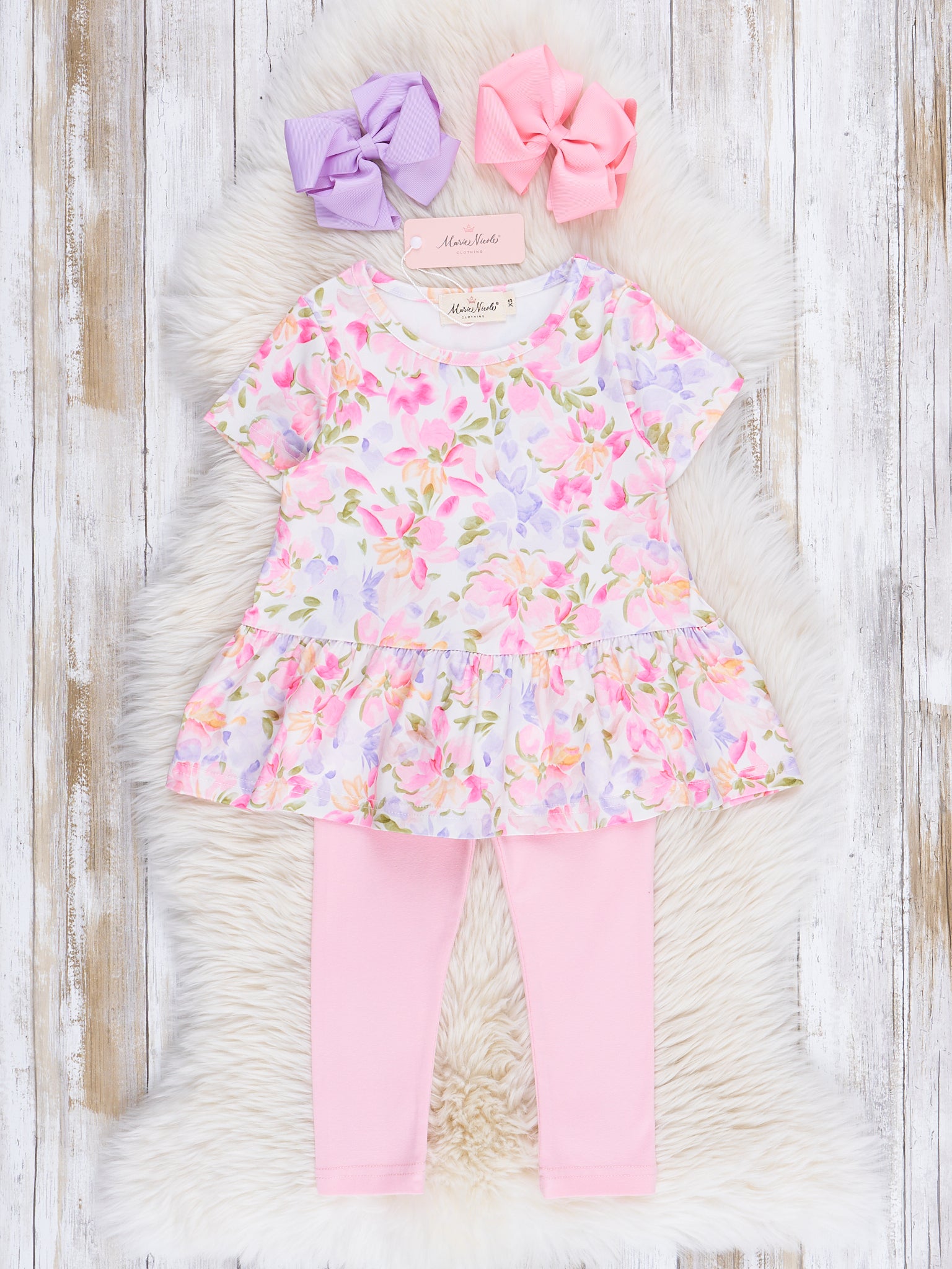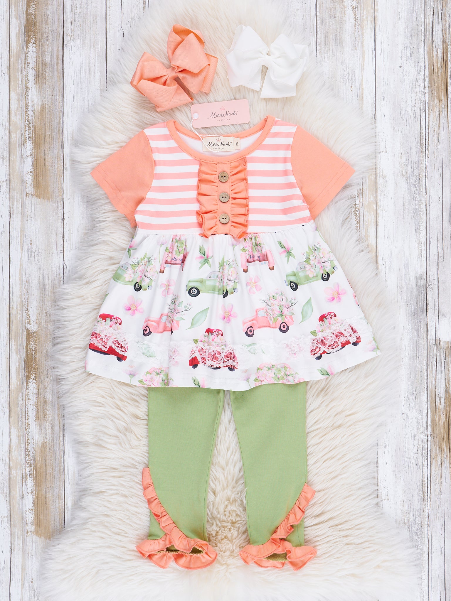 Teal & Pink Floral Good Vibes Ruffle Outfit