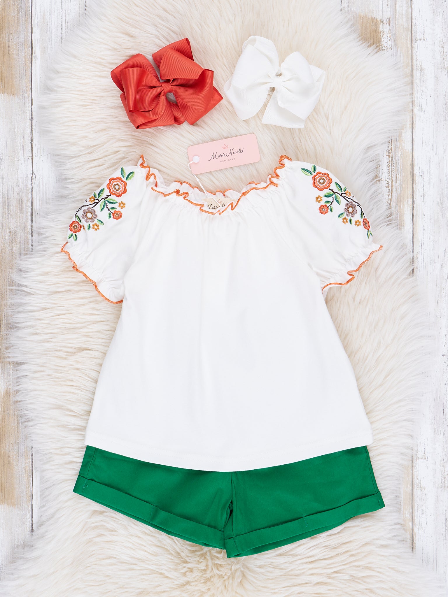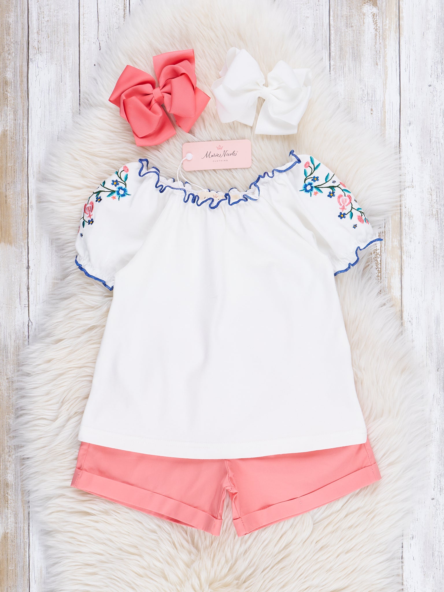 Wildflowers & Teal Dots Ruffle Shorts Outfit