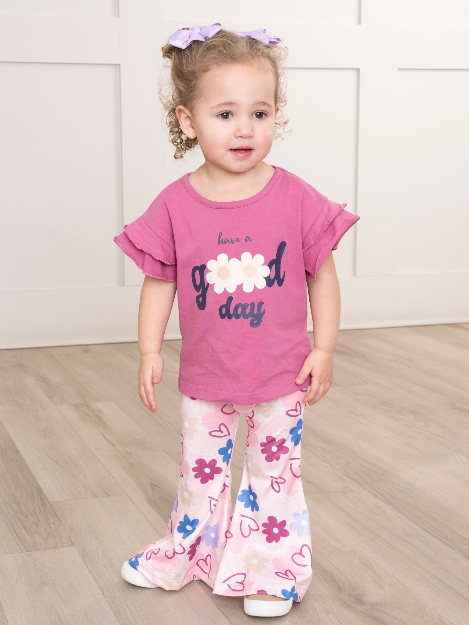 Magenta Flowers Good Day Bell Bottoms Outfit