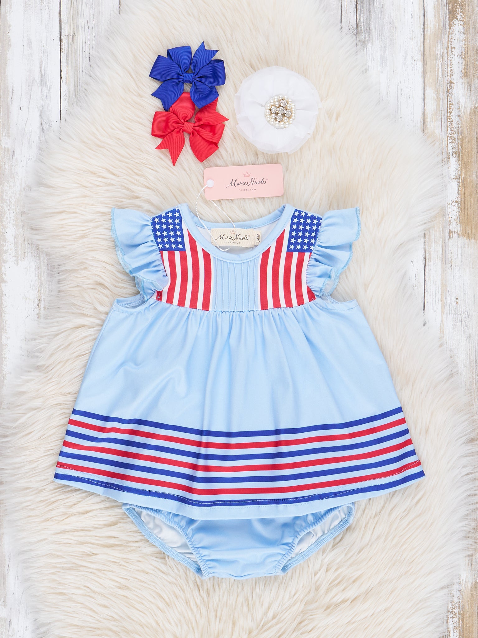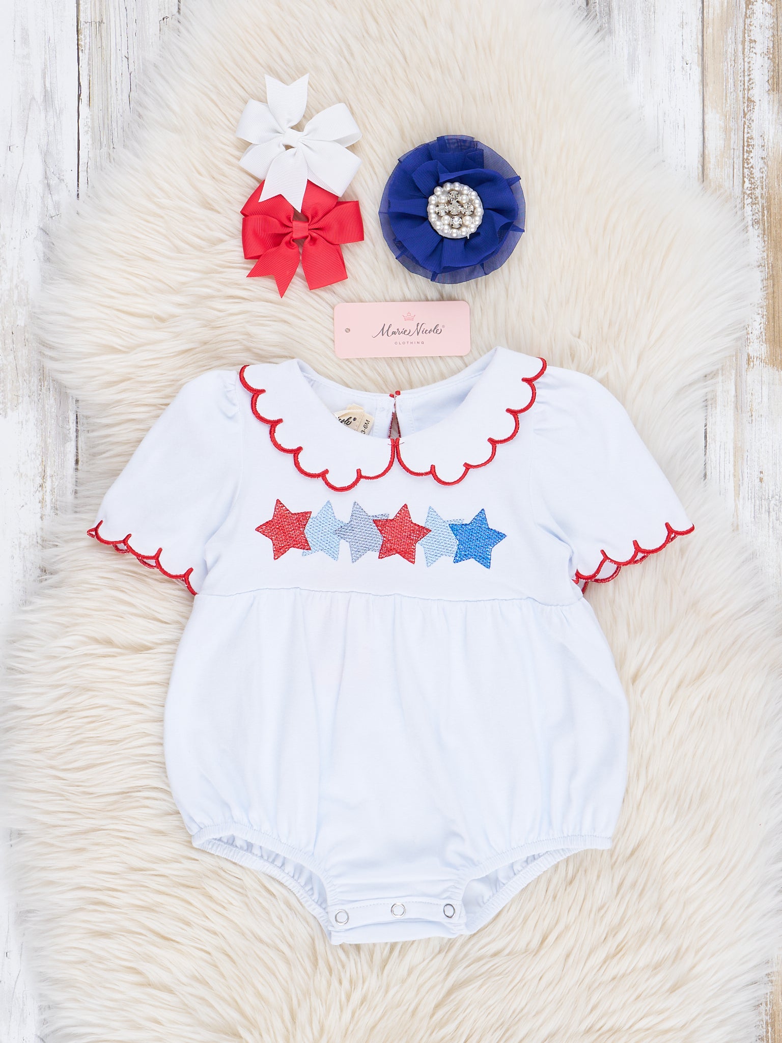 Red, White & Blue Embroidered Stars Bloomers Outfit
