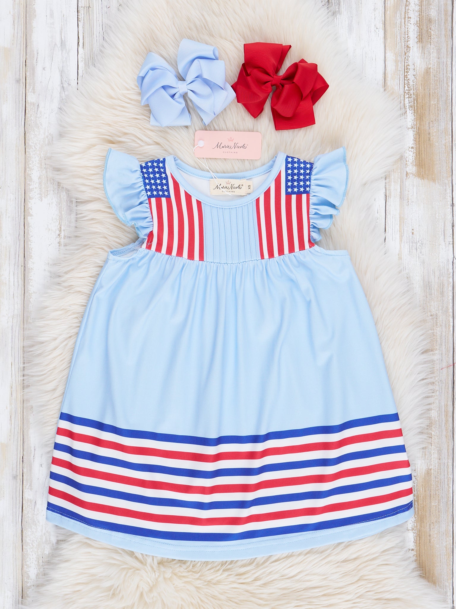 Red, White & Blue Embroidered Stars Ruffle Outfit