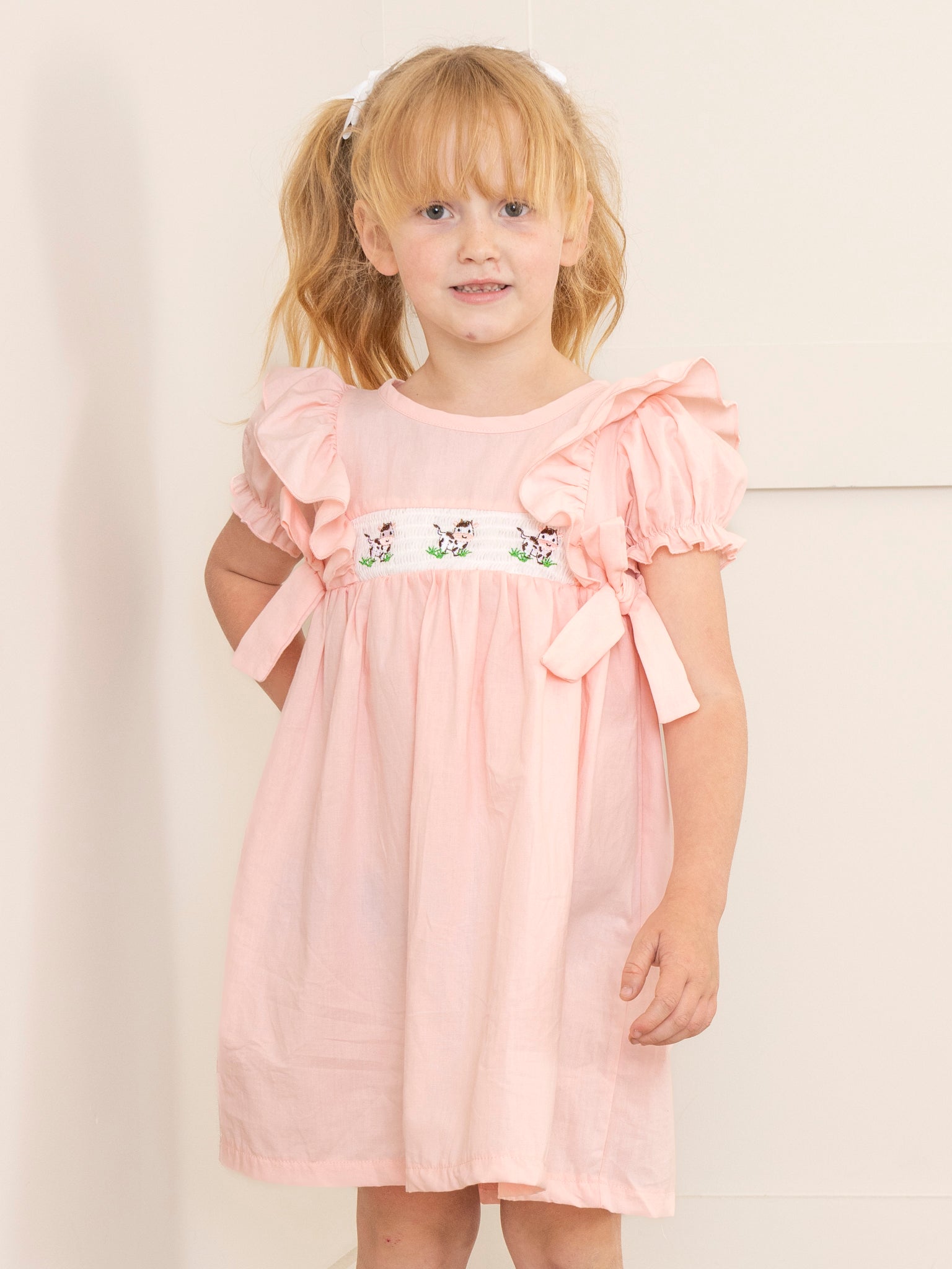 Soft Pink Smocked Farm Dress