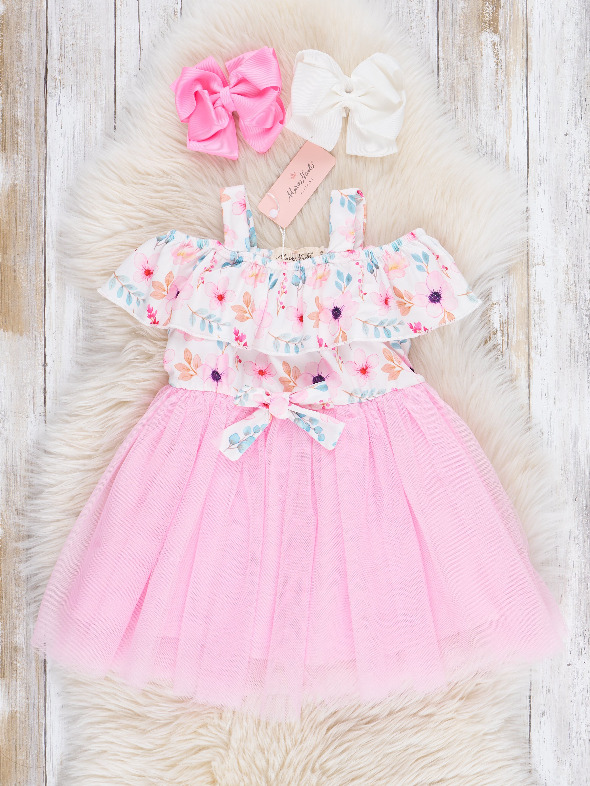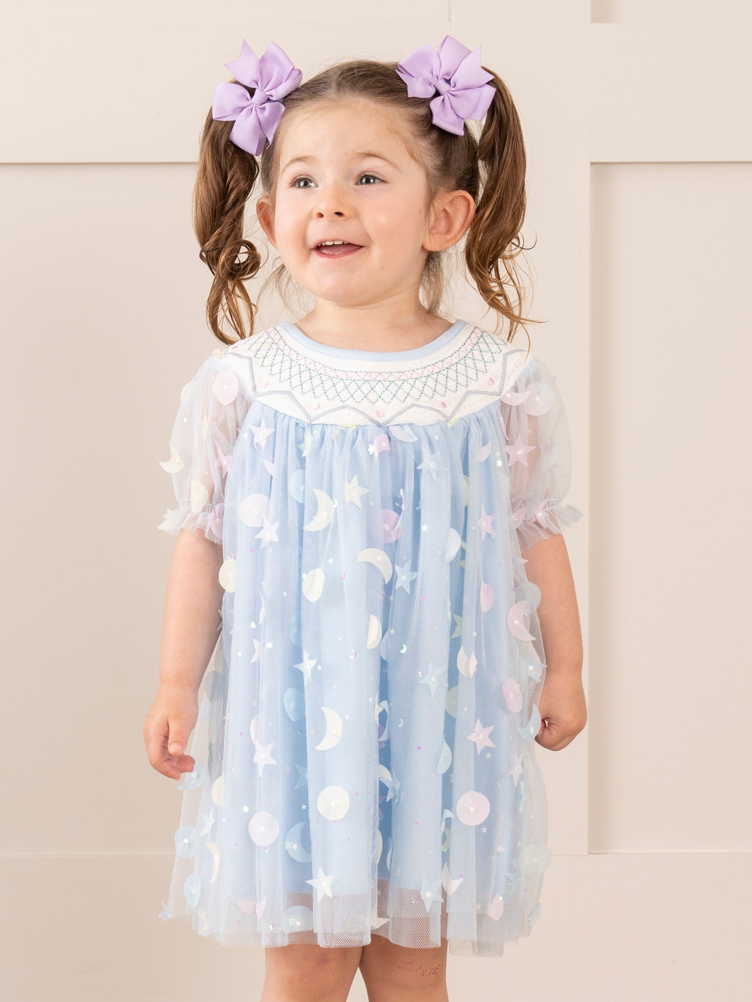 Blue Smocked Garden Blooms Tulle Overlay Dress