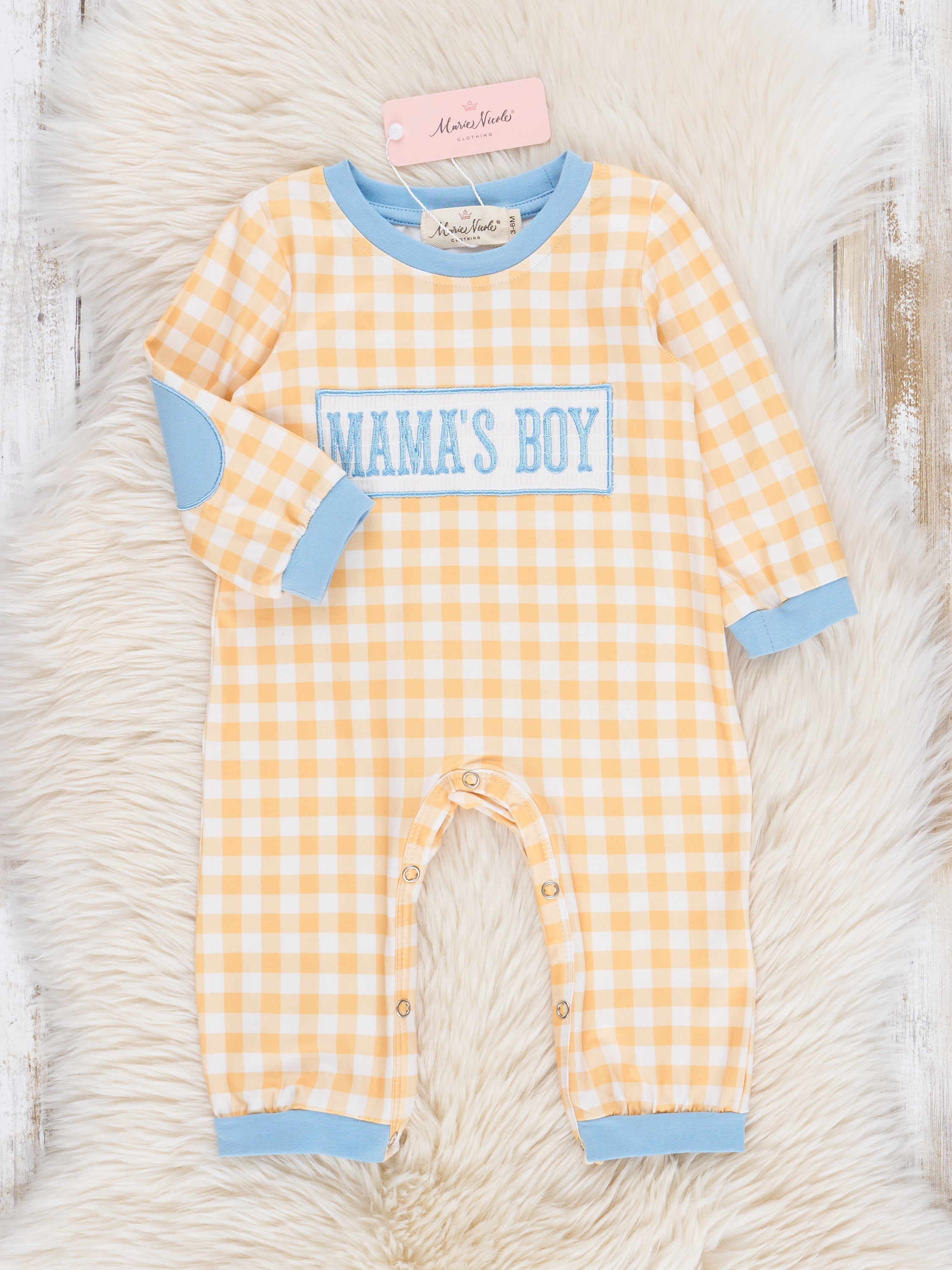 Blue & Yellow Smocked "Mama's Boy" Romper