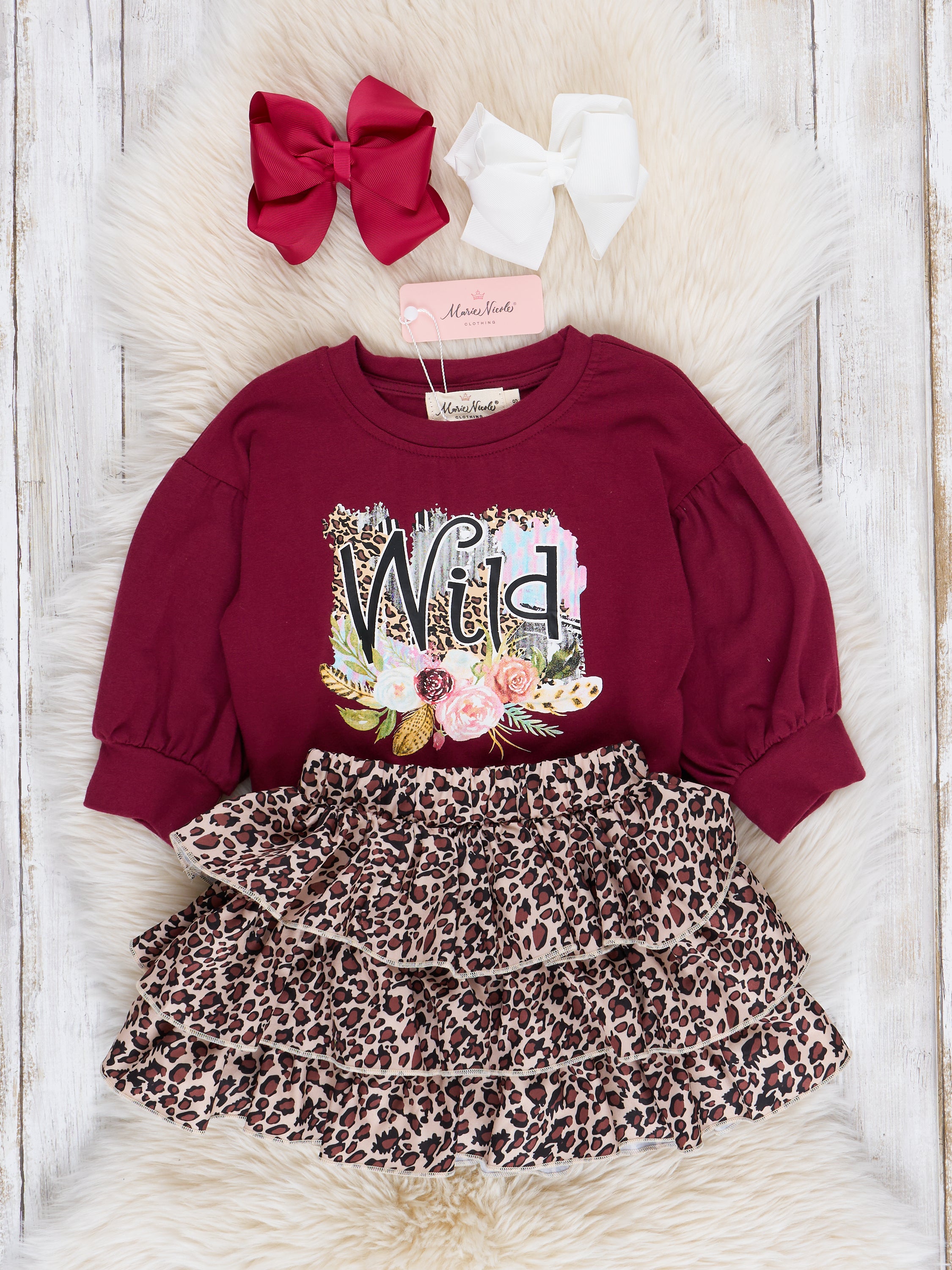 Burgundy & Leopard Wild Girl Outfit w/ Skirt