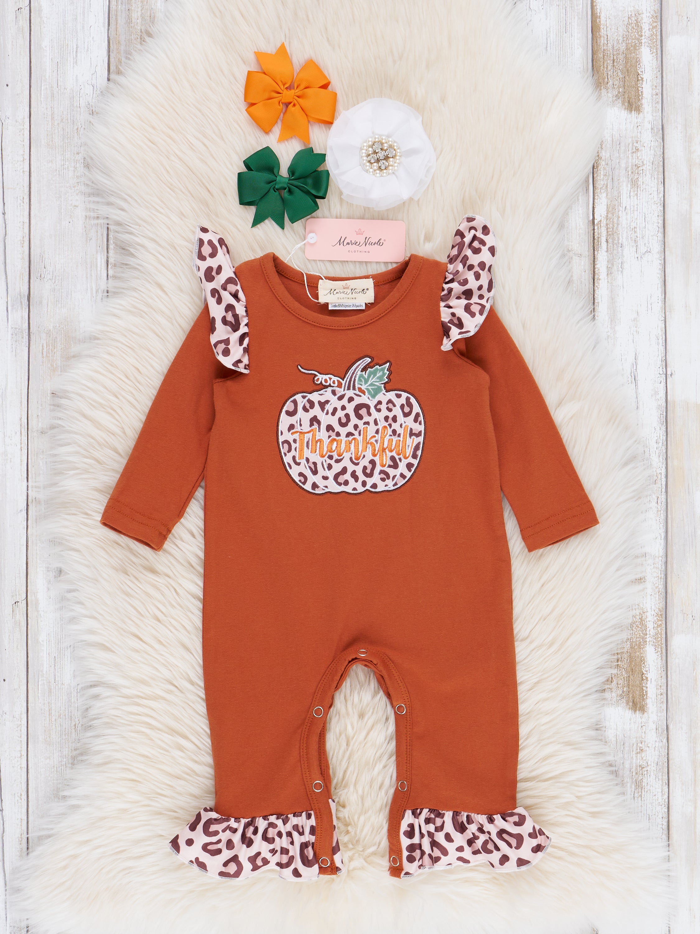 Bronze & Olive Leopard Pumpkin Ruffle Romper