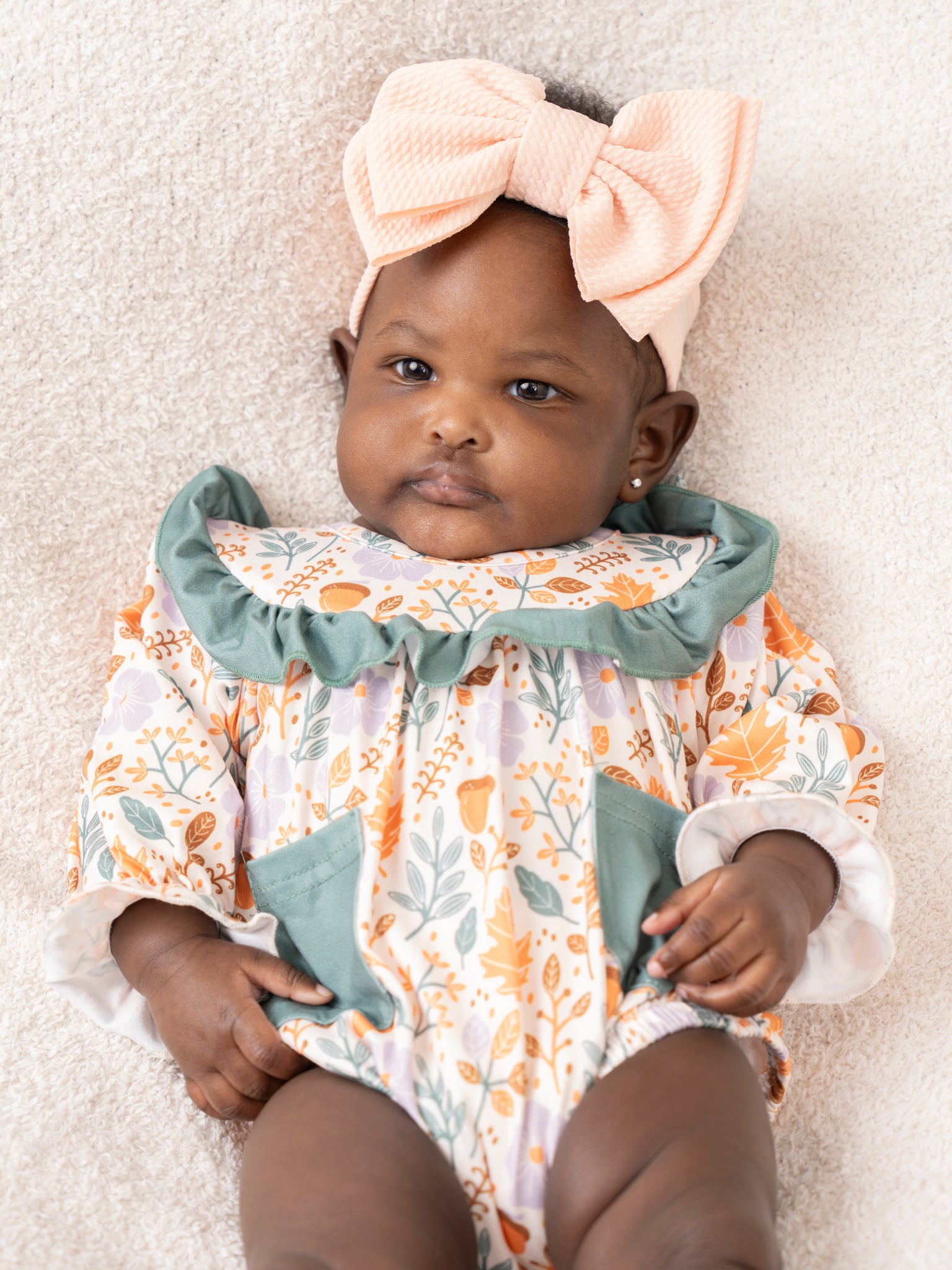 Sage Green Dainty Autumn Blooms Ruffle Romper